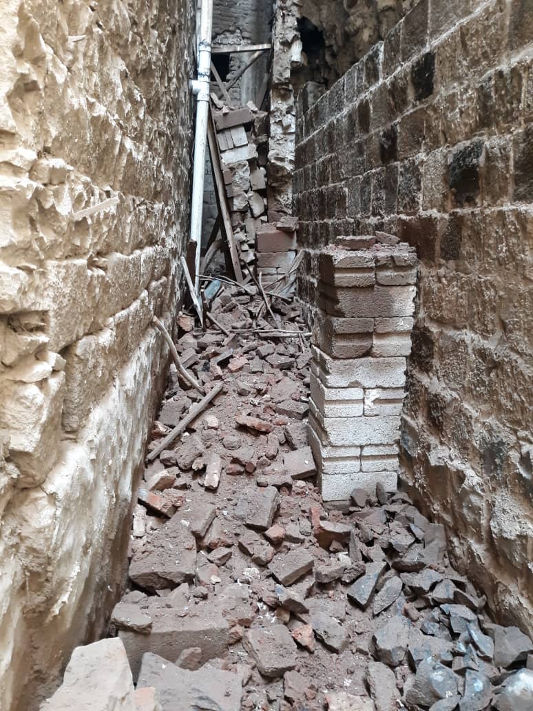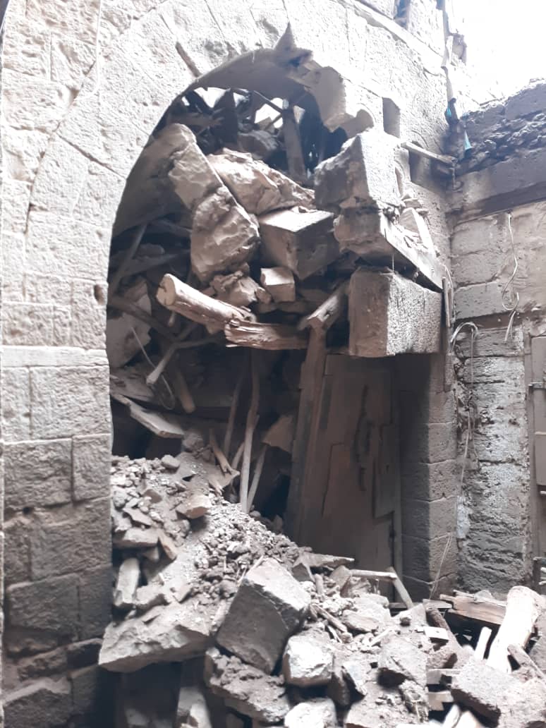 وأشار البيان إلى حدوث انهيارات جزئية للجدران الحاملة والأسقف بسور مدينة صنعاء الشمالي والجنوبي، مؤكدا ان هذه المدينة العالمية توجه اليوم كارثة حقيقة تهدد وجودها.
