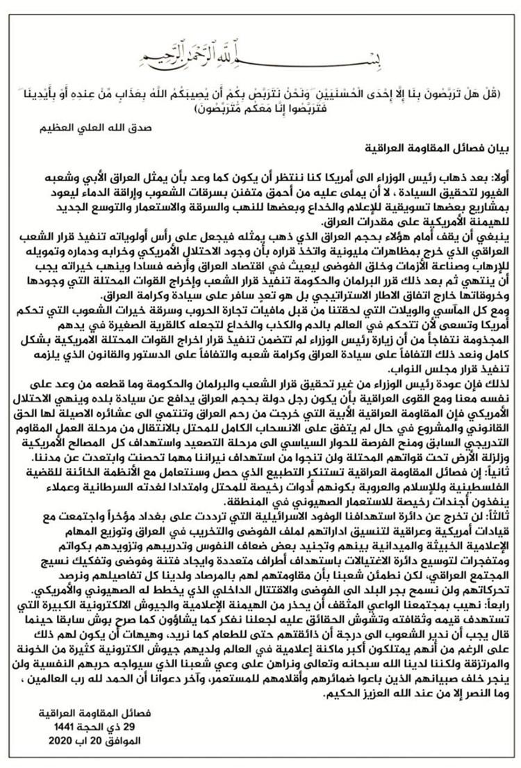 انسحاب الولايات المتحدة، يبقى خطوة ناقصة لدى الشارع العراقي، الذي يطالب بخروج كل القوات، خاصة بعد الموقف غير الواضح لترامب اثناء لقائه رئيس الوزراء العراقي مصطفى الكاظمي في واشنطن، واعلانه سحب قواته دون تحديد حجم الانسحاب هذا او توقيته، ما يبقي الخيارات كافة مطروحة بالنسبة للعراقيين، وذلك حتى توضيب اخر حقيبة لاخر جندي اجنبي وغروب شمس القوات الاميركية في بلادهم.