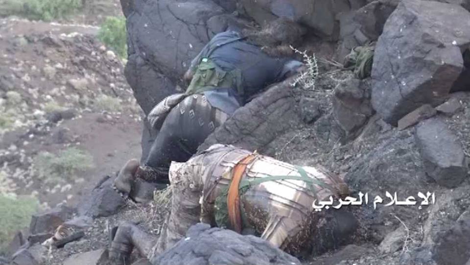 قتلى في صفوف مرتزقة العدوان تركت جثثهم في منطقة المواجهات فيما يؤكد أبطال الجيش واللجان الشعبية استكمال ملاحقة وتطهير المرتزقة من المناطق المحاذية.