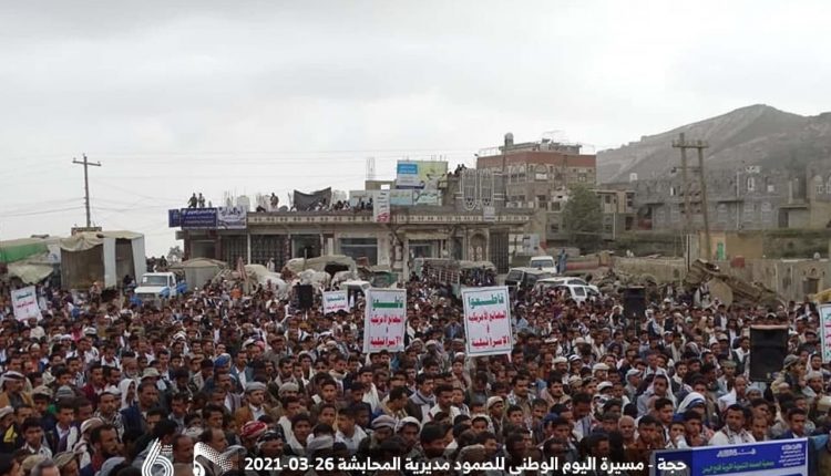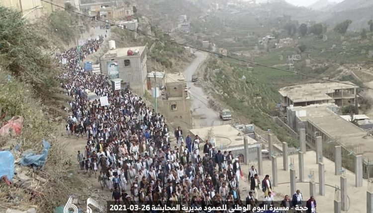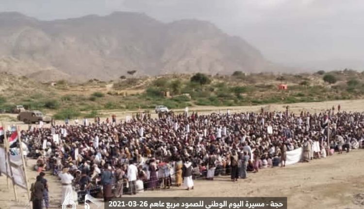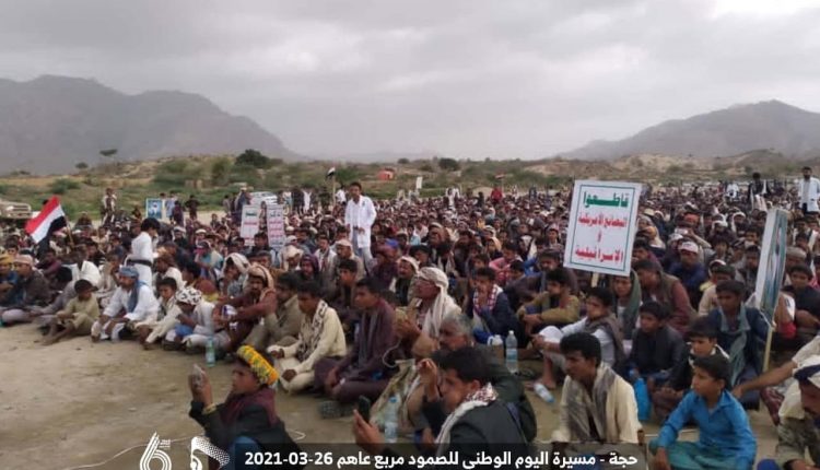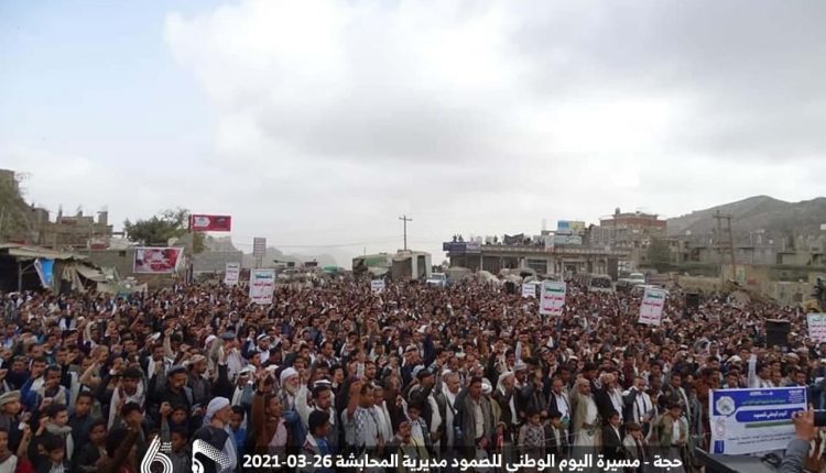 شهدت محافظة حجة اليوم ثمان مسيرات جماهيرية حاشدة بمناسبة اليوم الوطني للصمود وتدشينا للعام السابع من الصمود في وجهة العدوان.