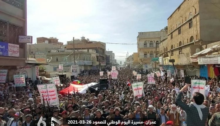 شهدت محافظة عمران اليوم مسيرة جماهرية حاشدة، بمناسبة اليوم الوطني للصمود وتدشين العام السابع من الصمود في وجه العدوان الأمريكي السعودي. نددوا فيها باستمرار العدوان والتأكيد على استمرار الصمود والثبات في مواجهة قوى الاستكبار.