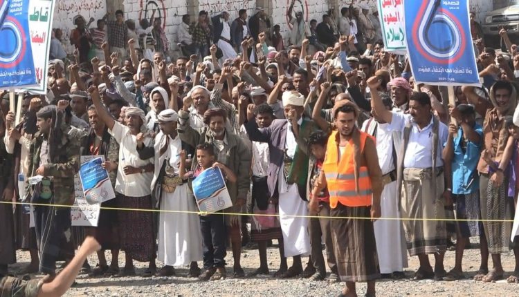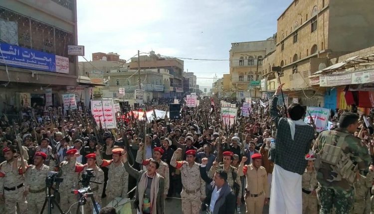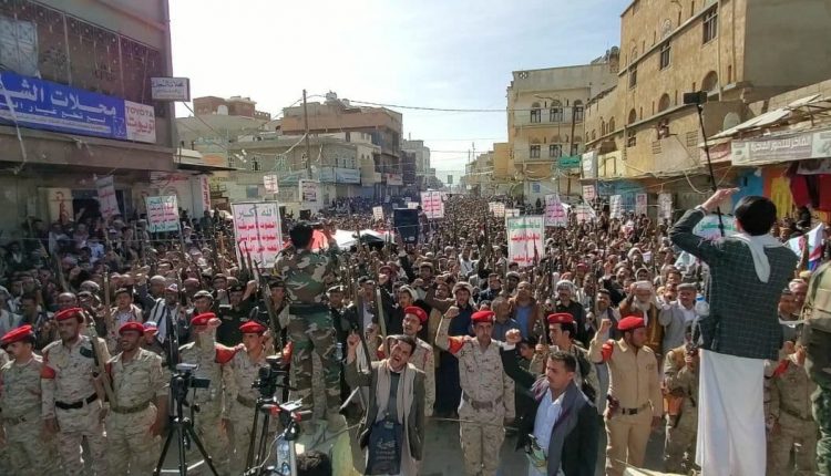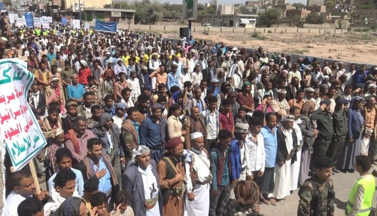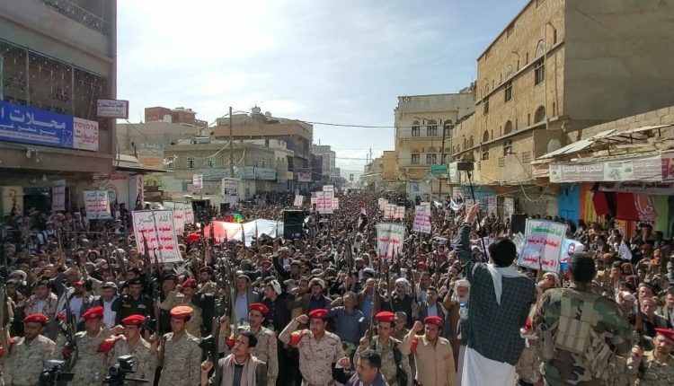 جماهير ريمة: استمرار العدوان وحربه الاقتصادية المتصاعدة لن يثني الشعب اليمني عن مواصلة الدفاع عن الوطن وسيادته واستقلاله