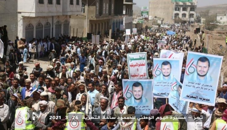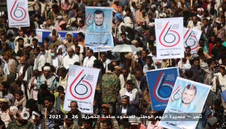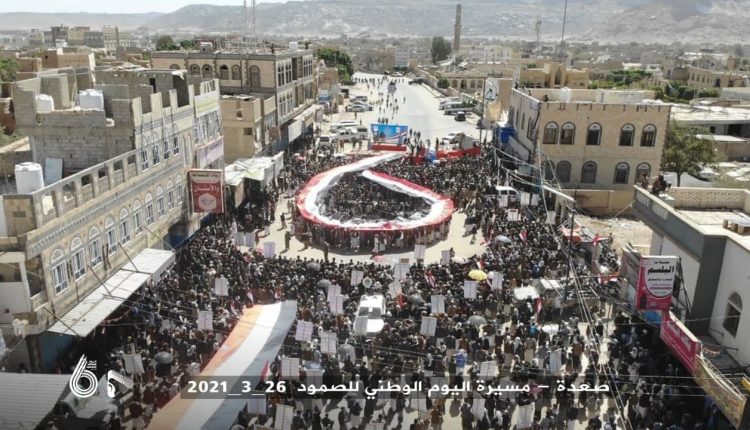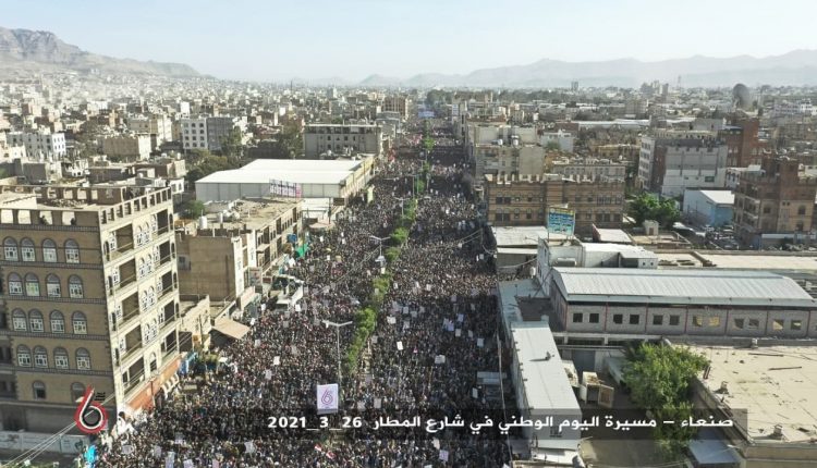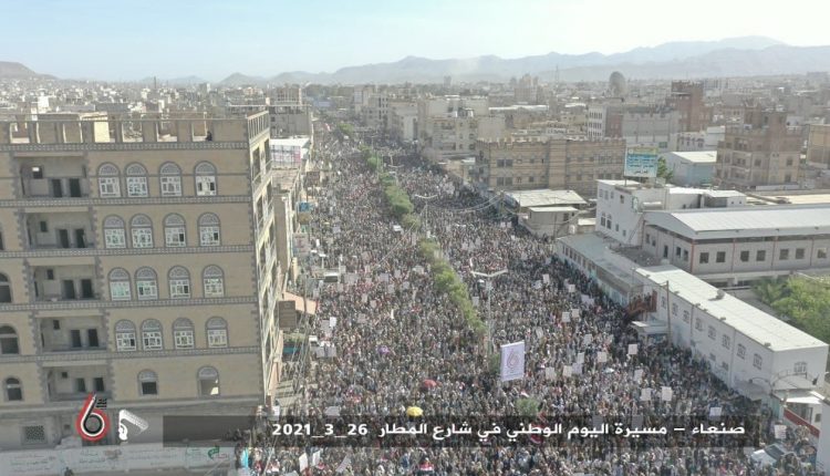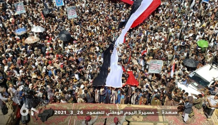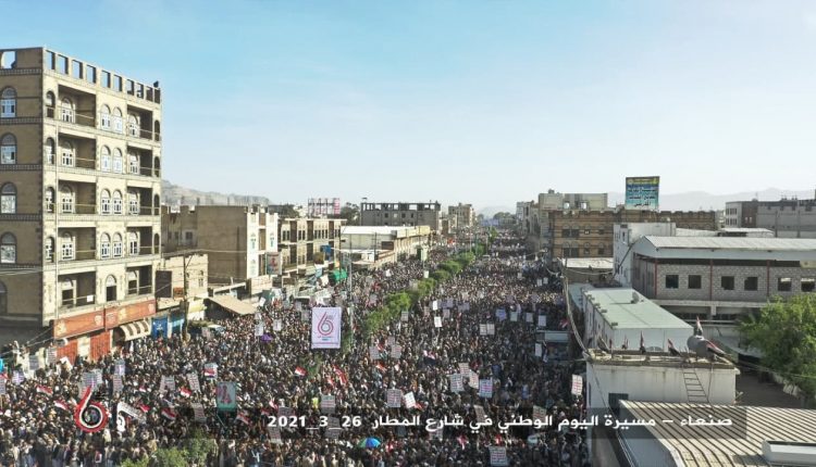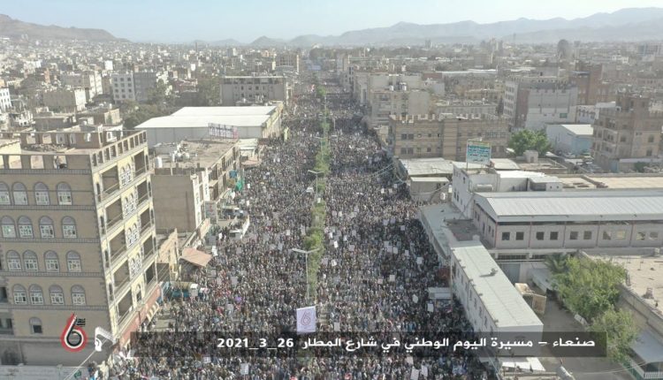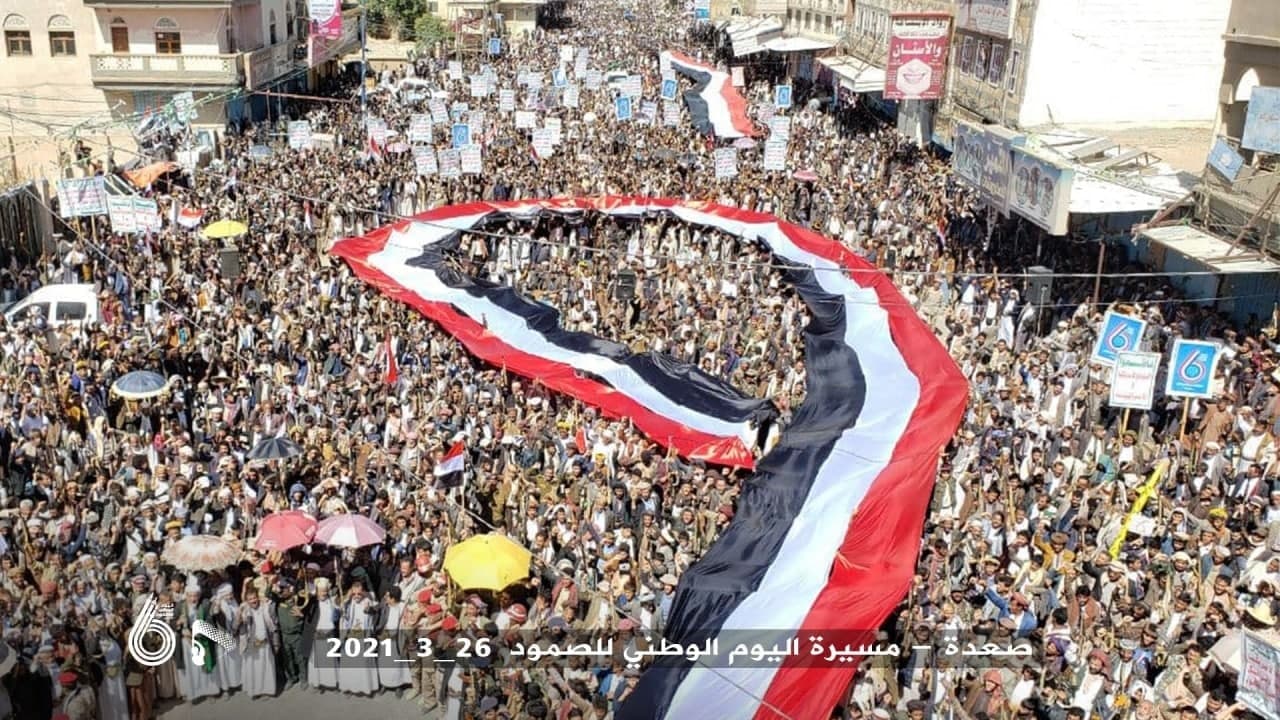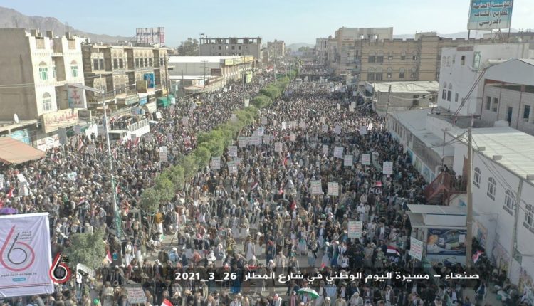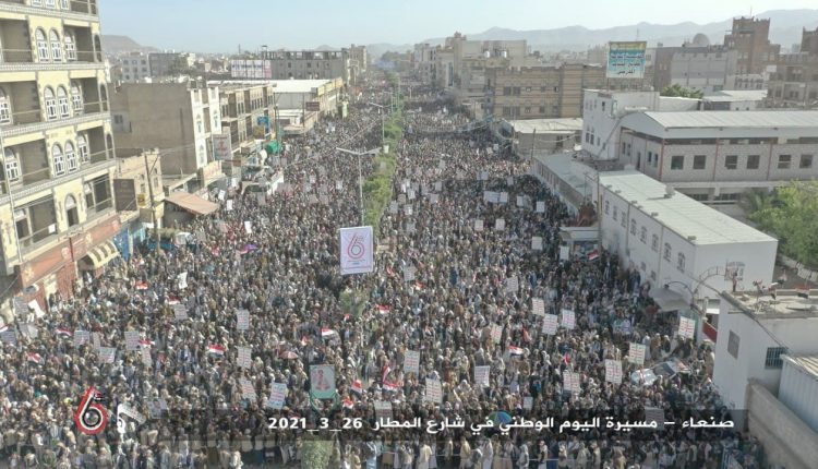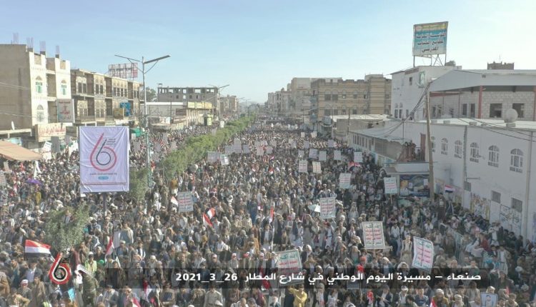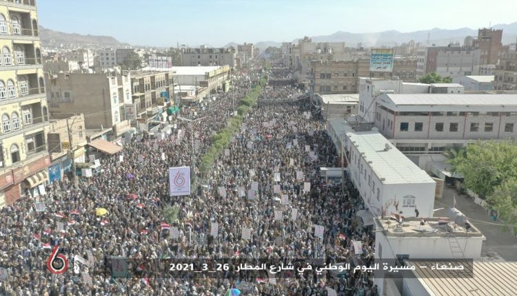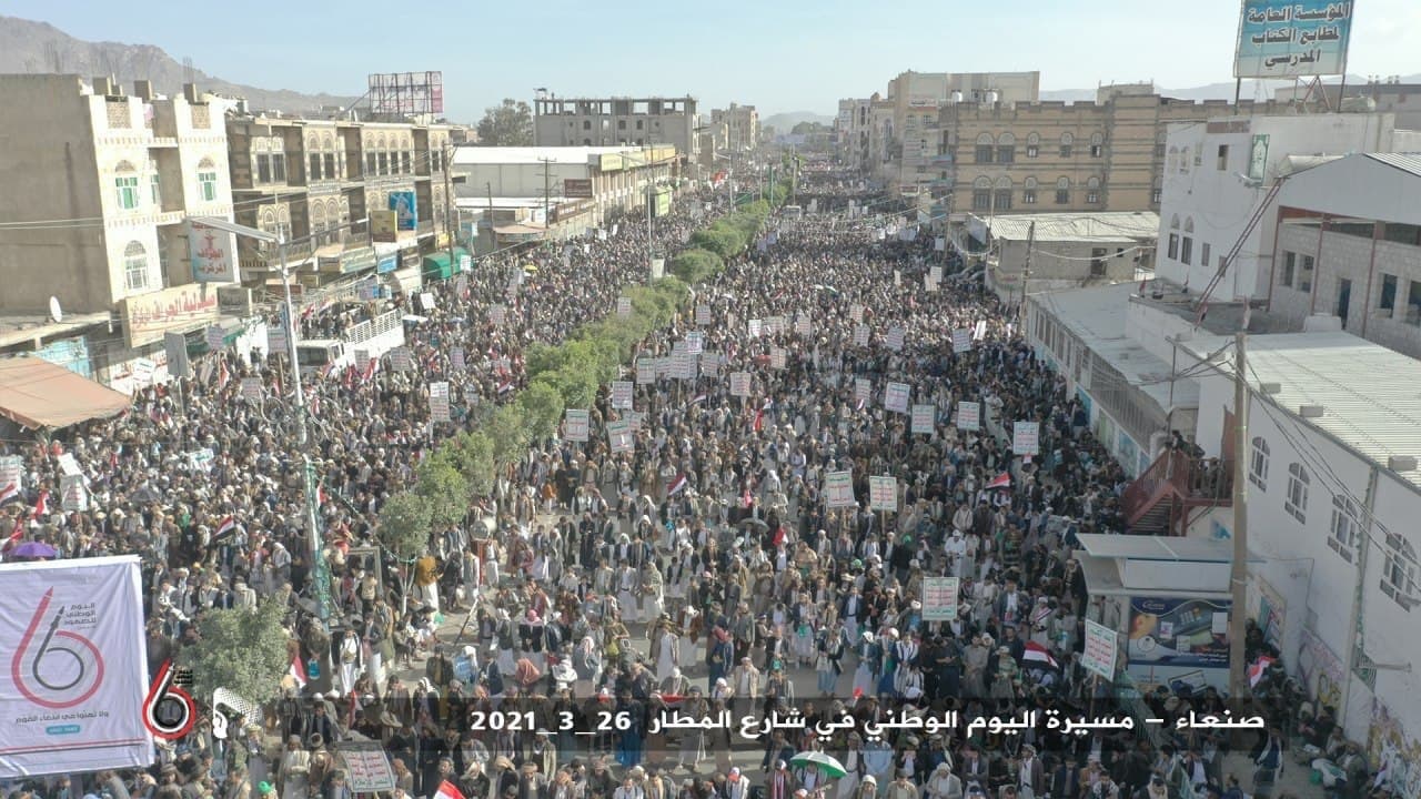 شهدت العاصمة صنعاء، عصر اليوم الجمعة، ومختلف المحافظات اليمنية مسيرات جماهيرية كبرى في الذكرى السنوية السادسة للصمود في وجه العدوان الأمريكي السعودي الإماراتي.