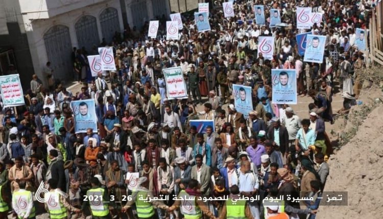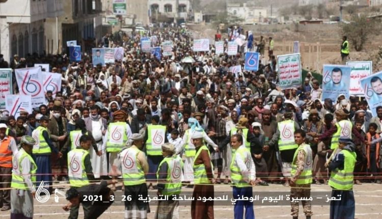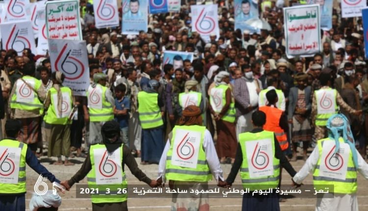 مسيرات تعز تؤكد الاستمرار في الصمود والثبات حتى نيل الحرية والاستقلال