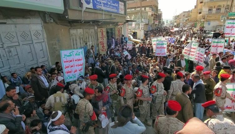وأكد بيان المسيرة حق الشعب اليمني المشروع في الدفاع عن نفسه بكافة الوسائل الممكنة. مشيدين بضربات القوة الصاروخية والطيران المسير وانتصارات أبطال الجيش واللجان في كافة الميادين، مؤكدا مواصلة الصمود والجهوزية لتحرير الوطن.