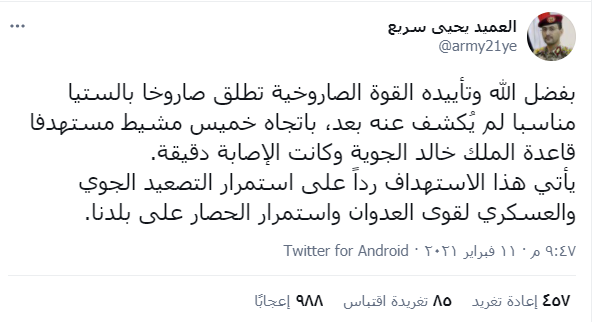 ولعلَّ هذه هي المرة الأولى التي تعلن فيها القوات المسلحة عن ضرب عدة مقرات لشركة أرامكو في أربع مناطق سعودية خلال عملية واحدة، وفي ذلك توضيحٌ إضافيٌّ لمعنى “الزخم العسكري” الذي تحدث عنه القائد، ورسالة جلية بأن عمليات الردع تدخل مستوى جديدًا يضاعف التهديد على أهم المنشآت التي لم ينكر النظامُ السعودي خوفَه من استمرار استهدافها عندما “ناشد”، أكثرَ من مرة، المجتمعَ الدولي “لحماية مصادر الطاقة العالمية” في المملكة.