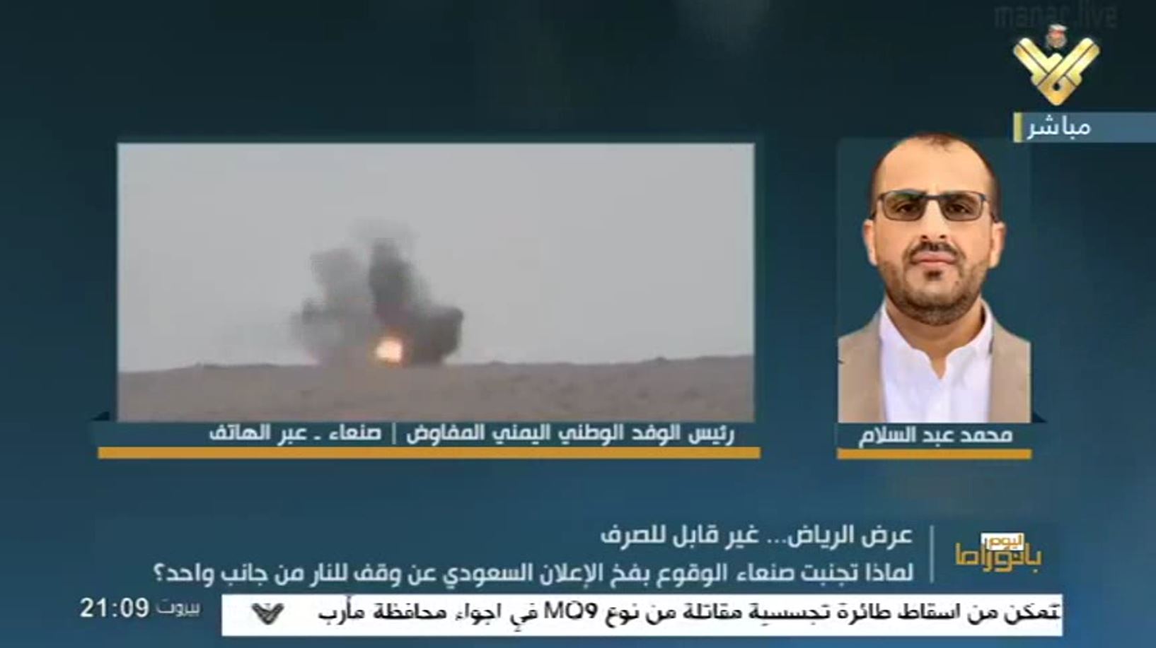 وأردف محمد علي الحوثي” نحن لا يوجد لدينا أي خطوط تمنعنا من ان نتحرك، نعتبر انفسنا مستقلين وإذا دعت المصلحة لشرح قضيتنا في أي مكان في العالم سنذهب لشرح قضيتنا لأنه يُعتَدى على بلدنا ويُكذَب علينا ويُضلَّل على قضيتنا ويدّعي الآخر بأنه المظلوم والمستهدَف بينما هو من يقصف ومن يستهدف بلدنا ويحاصرنا ويقتل ابناءنا ونساءنا.