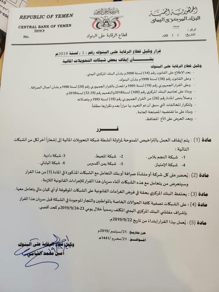 كما أكد المصدر أن البنك المركزي -المركز الرئيسي صنعاء- سبق وحذر من نتائج هذه الأعمال والقرارات من دول العدوان على اليمن ومرتزقتها، عبر ما يسمى ببنك مركزي عدن.