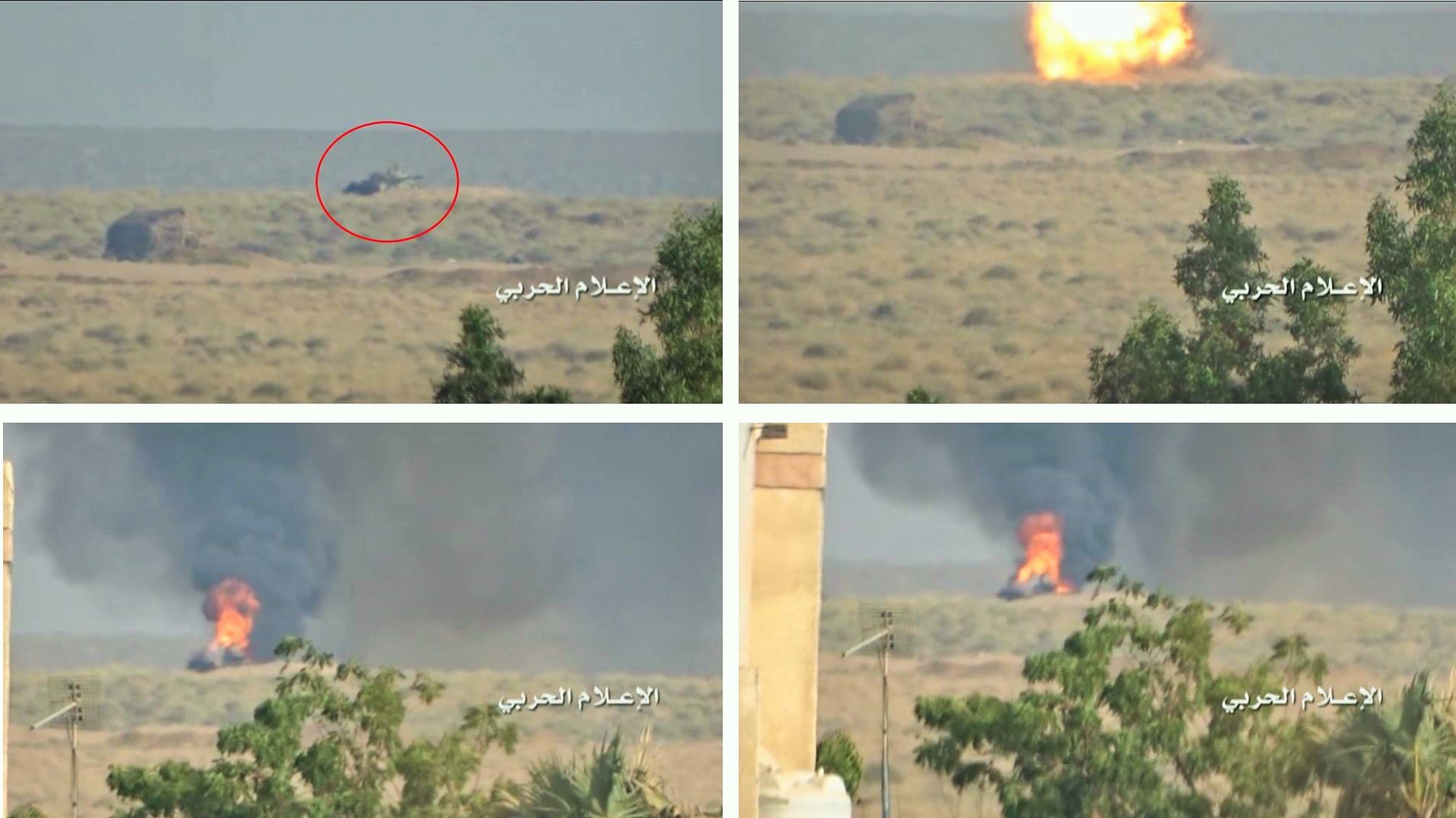 ويوثق المشهد الموثّق بعدسة الإعلامِ الحربي لحظات رصدِ دبابةٍ تابعةٍ لمرتزقة العدوان حيث كانت خلف ساترٍ ترابيٍّ حين باغتَها المجاهدونَ بصاروخ موجه اصابَها بشكل مباشر وأدّى إلى تدميرها وإحراقها بالكامل بما فيها من ذخائر.