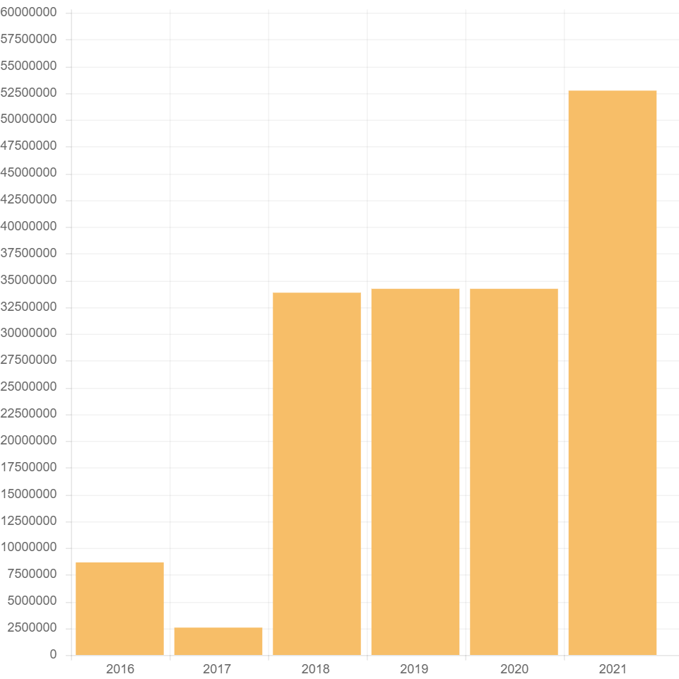 عائدات النفط الخام اليمني خلال الفترة من 2016 حتى 2021 بالدولار