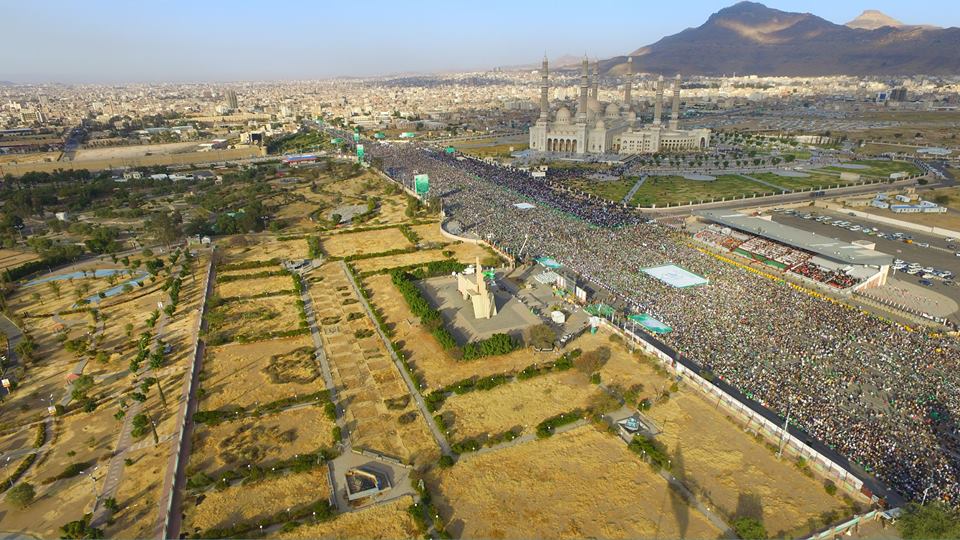 في أكبر تجمهر إسلامي بعد الحج في مكة المكرمة، احتضنت العاصمة صنعاء عصر اليوم الأحد 12 ربيع الأول 11 ديسمبر حضورا بشريا مهيبا إحياءً واحتفاءً بذكرى المولد النبوي الشريف .. حيث توافدت إلى ميدان السبعين بالعاصمة صنعاء حشودا جماهيرية كبرى من كافة محافظات الجمهورية تمثل مختلف شرائح المجتمع اليمني للمشاركة في إحياء ذكرى المولد النبوي الشريف للعام 1438هــ على صاحبها واله أفضل الصلاة وأتم التسليم.
