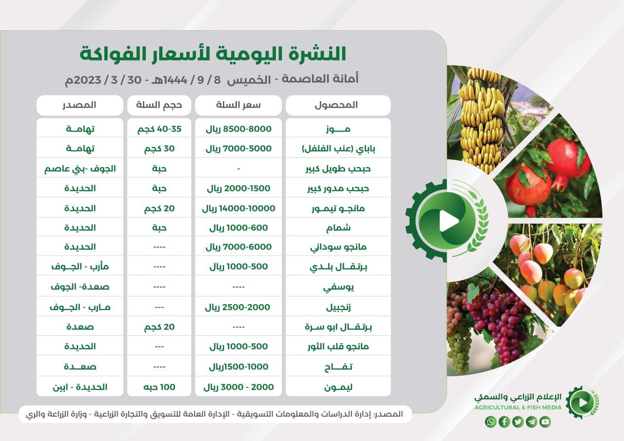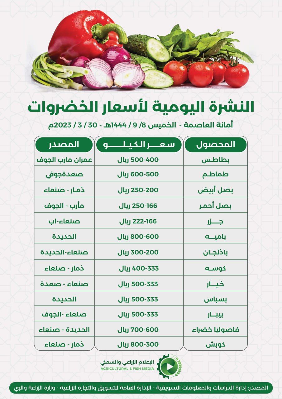 أخبار وتقاريرإنفوجرافيك أسعار الخضروات والفواكة ليوم الخميس 30 مارس، 2023 290 أسعار الخضروات والفواكة ليوم الخميس 30 مارس 2023م