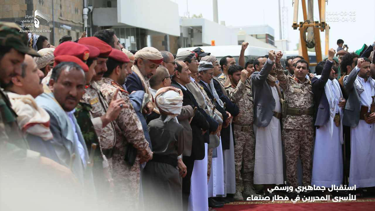 وجرى استقبال رسمي وجماهيري في مطار صنعاء للأسرى المحررين تقدمهم أعضاء من المجلس السياسي الأعلى والوزراء ورئيس هيئة الأركان اللواء الركن محمد الغماري وكبار مسؤولي الدولة وقيادات عسكرية وسياسية.