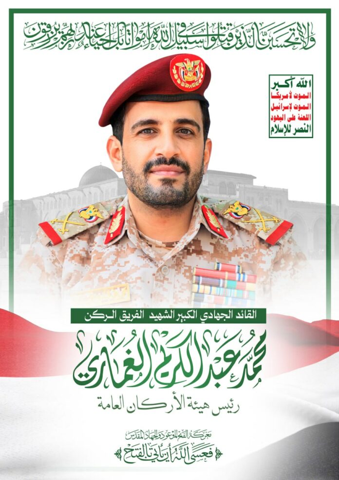 في مشهدٍ يختزل المعادلة السياسية والعسكرية اليمنية الجديدة، أعلنت القوات المسلحة اليمنية، الخميس، استشهاد اللواء الركن محمد عبد الكريم الغماري، رئيس هيئة الأركان العامة، في سياق ما وصفته بـ“العمل الجهادي وأداء الواجب الإيماني”، مؤكدة أنه ارتقى “شهيدًا سعيدًا ضمن قافلة العظماء على طريق القدس”، في إشارة إلى استشهاده خلال العمليات الأخيرة ضد الاحتلال الإسرائيلي في إطار معركة الإسناد لغزة.