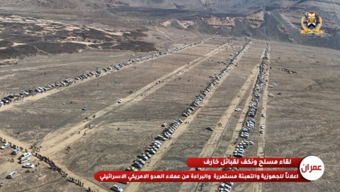 وخلال الساعات الأخيرة، شهدت محافظات “عمران وإب والحديدة” لقاءات موسعة ضمّت آلاف المقاتلين من القبائل، عُرضت خلالها أسلحة ثقيلة ومتوسطة في استعراضٍ للقوة والولاء الوطني، وأكدت البيانات الصادرة عن تلك اللقاءات أن القبائل تقف صفاً واحداً خلف القيادة الثورية والسياسية، وأنها لن تقف مكتوفة الأيدي أمام أي تصعيد سعودي أو أمريكي جديد.