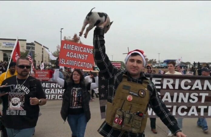 حادثة صادمة في تكساس.. أمريكي يضع نسخة من القرآن الكريم في فم خنزير خلال احتجاج مناهض للإسلام