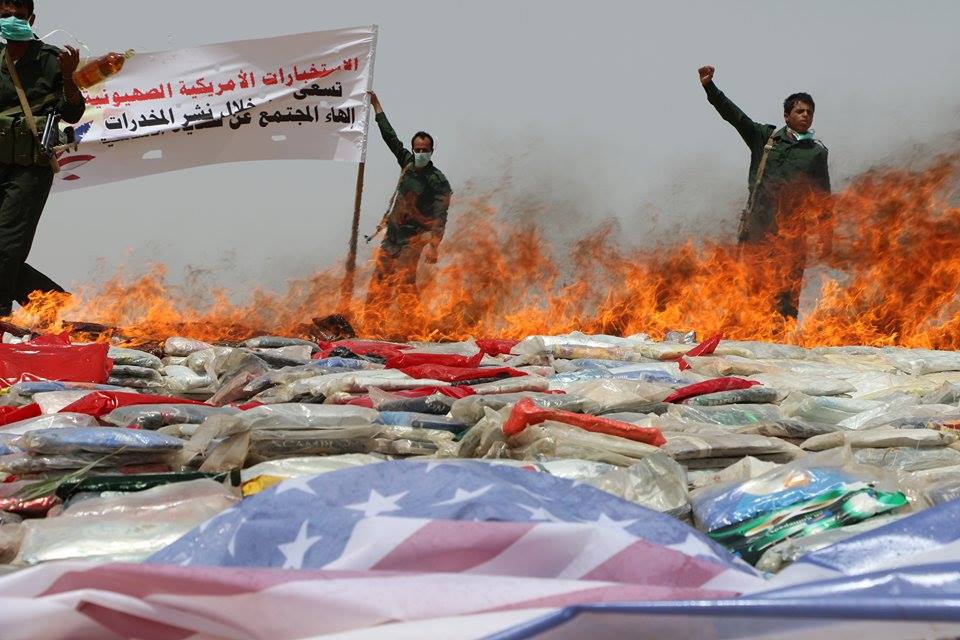 تم اليوم الإثنين 30 مايو 2016م، بمحافظة صعدة إحراق أكثر من 26 طن من الحشيش والمخدرات التي تحاول بها الاستخبارات الأمريكية والإسرائيلية والسعودية إفساد المجتمع واختراقه .