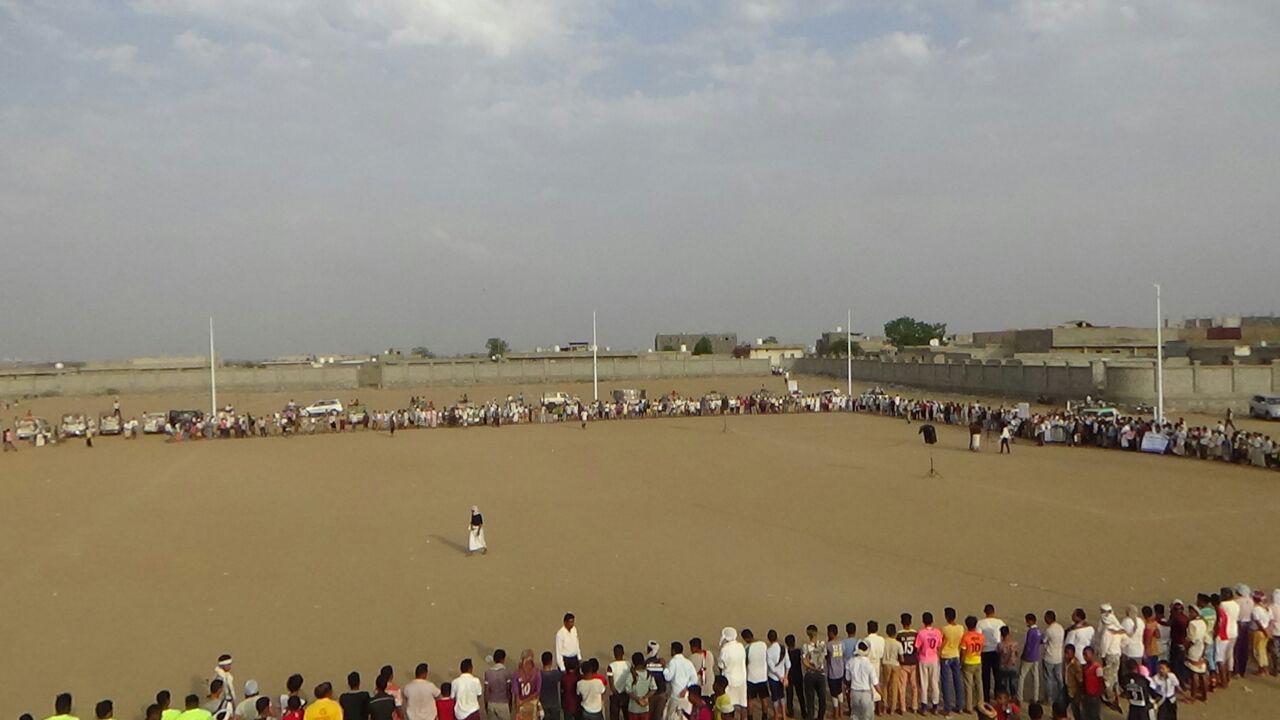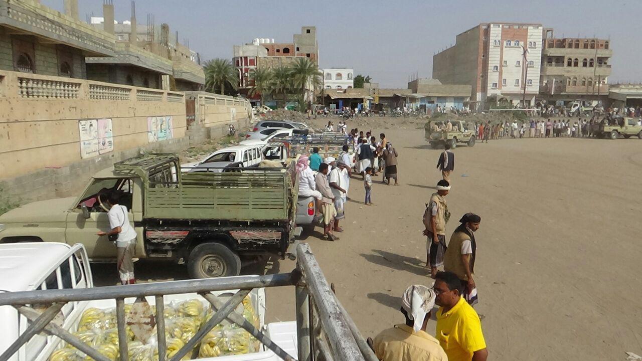 القافلة جاءت خلال وقفة احتجاجية حاشدة، جدد خلالها أبناء مديرية بيت الفقيه نفيرهم العام، وتضمنت القافلة مواد غذائية وأموال لرفد جبهات القتال.