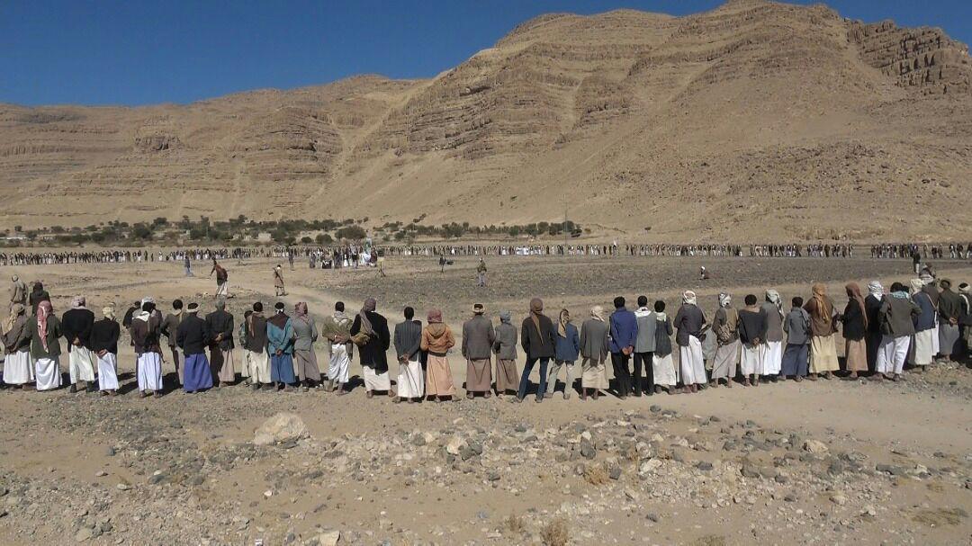 نظم أبناء مديرية خارف محافظة عمران وقفة قبلية مسلحه في إطار حملة للتعبئة العامة والتحشيد للتجنيد الرسمي في وزارة الدفاع .