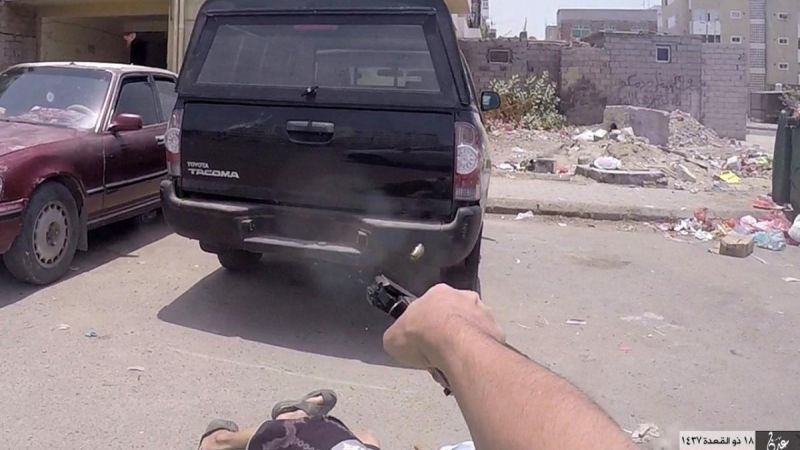 وأظهرت الصور، تحرك عناصر التنظيم بحرية في أحد أحياء المدينة، بعد تنفيذهما عملية الاغتيال، والاستيلاء على سلاح القتيلين، ومن ثم، مغادرة مسرح الجريمة دون أن يعترضهما أحد.