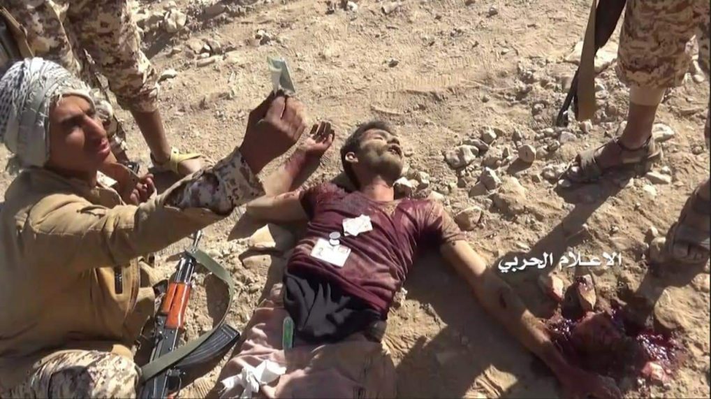 وفي المشاهد قتلى وأسرى من مرتزقة العدوان بالأضافة الى غنائم وعتاد عسكري حصل عليه الجيش واللجان الشعبية بعد السيطرة على مواقع المرتزقة .