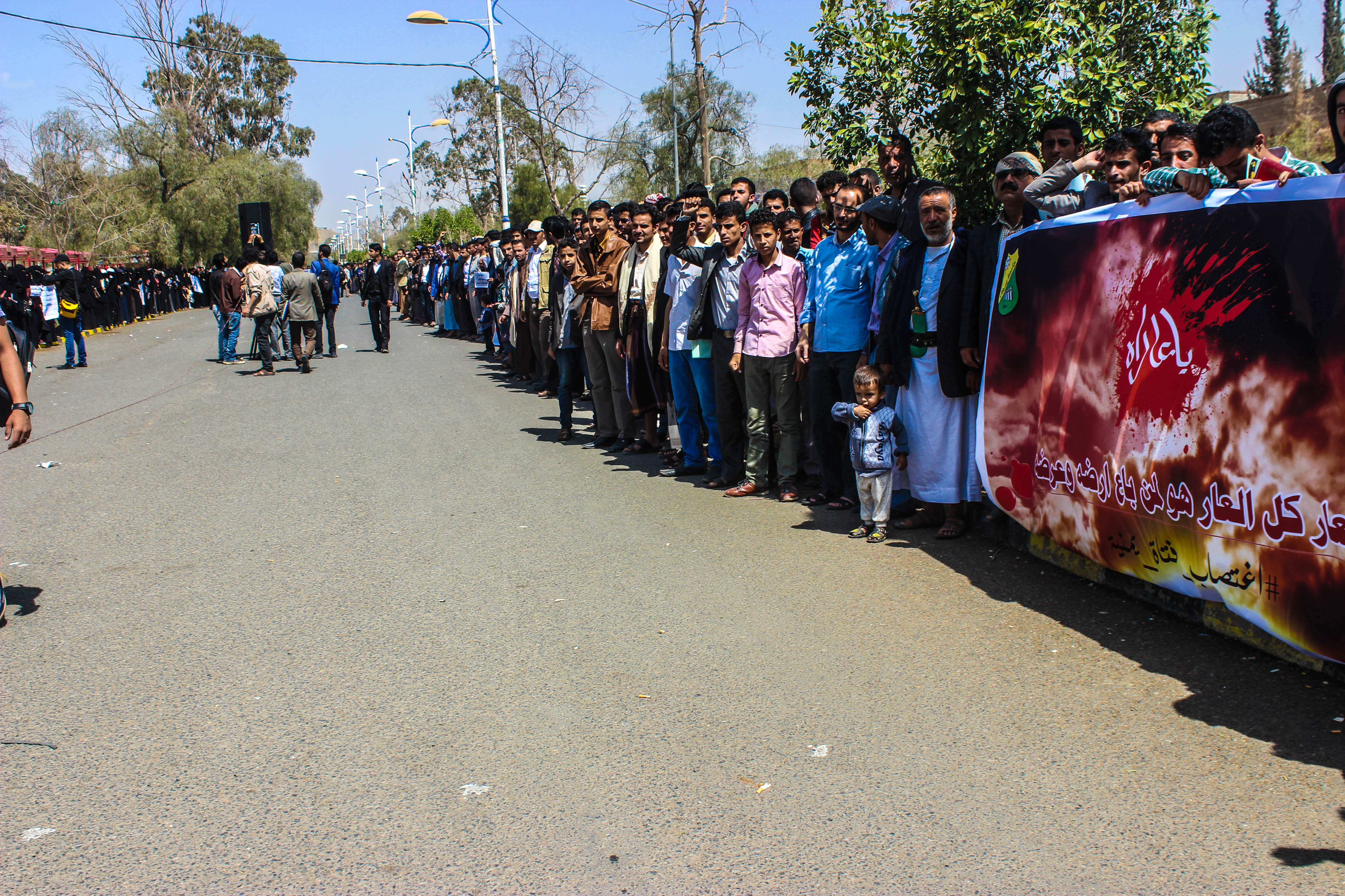 وقال بيان صادر عن الوقفة التي نفذت بالتنسيق مع معهد الشوكاني وملتقى الطالب الجامعي “إن حادثة الاغتصاب جريمة شنعاء وإنتهاك لأعراض اليمنيين من قبل أيدي حثالة العالم من مرتزقة الجنجويد التابعة لتحالف العدوان “.