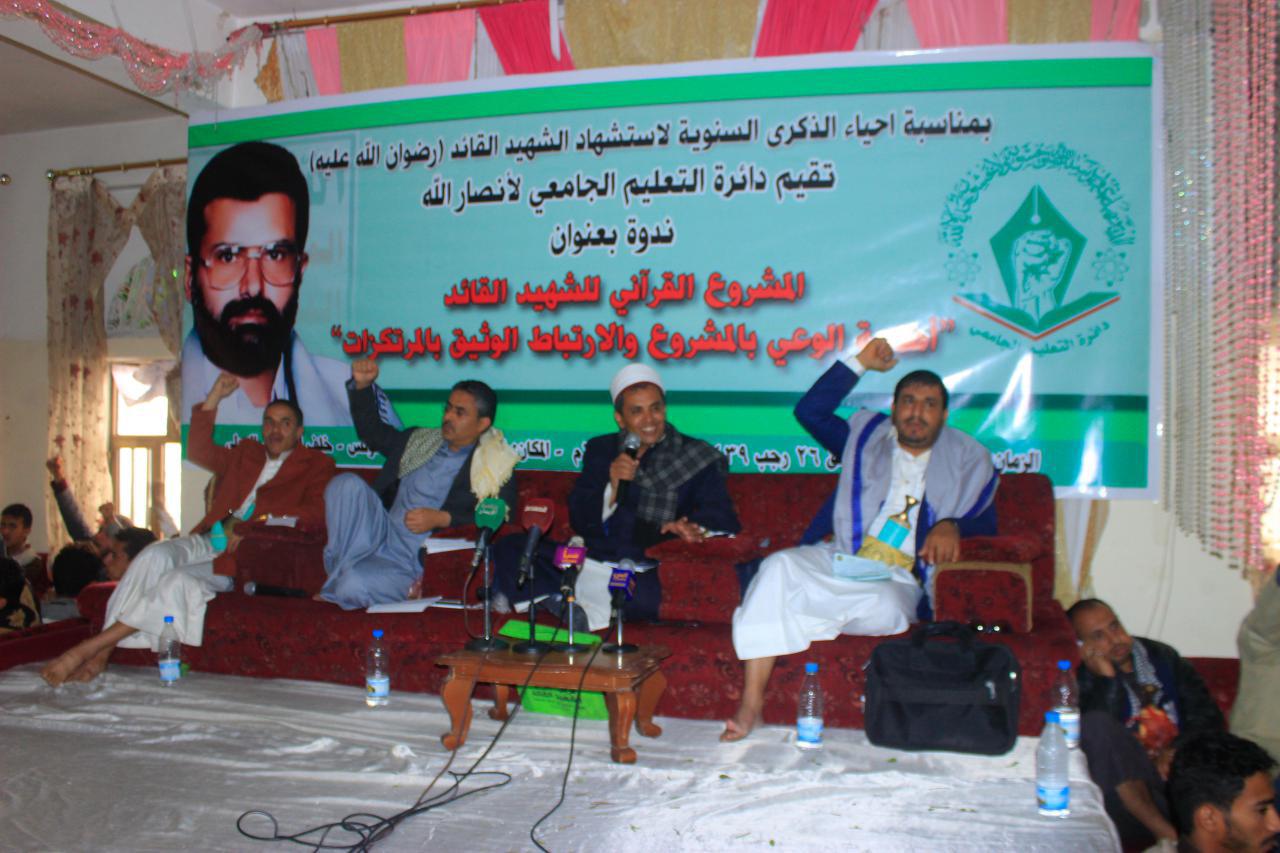 نظمت دائرة التعليم الجامعي لأنصار الله اليوم بصنعاء ندوة في ذكرى السنوية للشهيد القائد وتزامنا مع مرور ثلاث سنوات من الصمود في وجه العدوان.