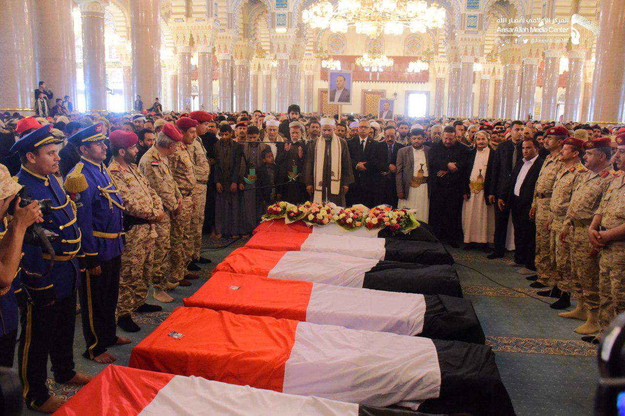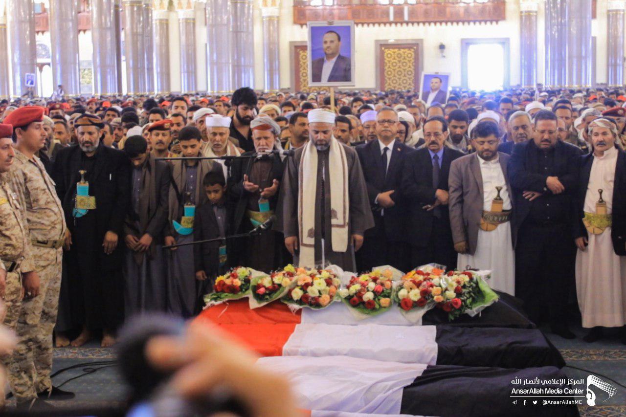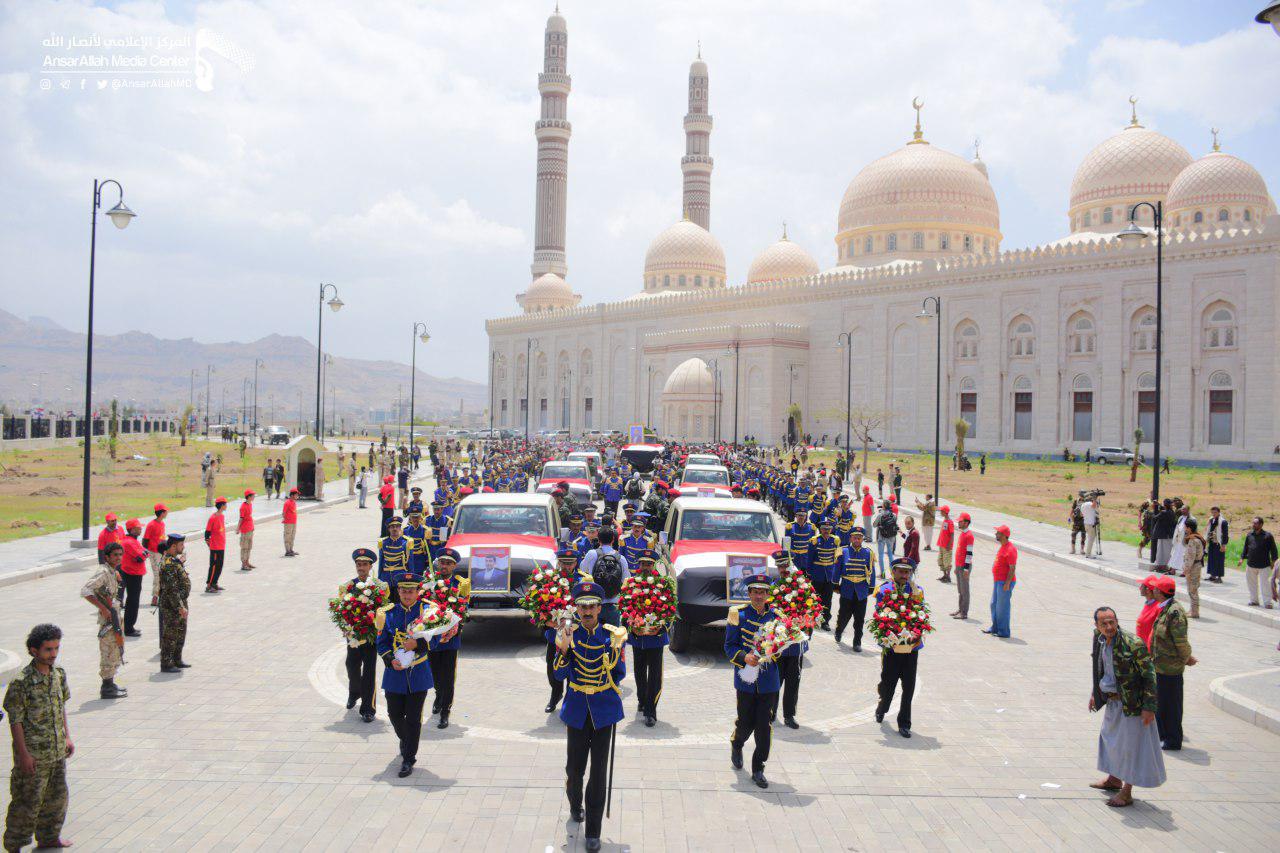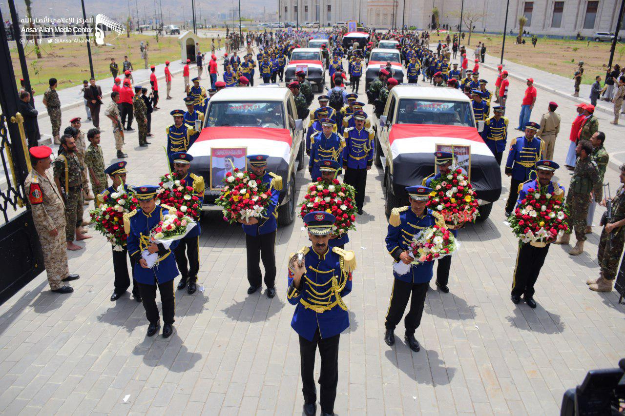 وكانت الحشود الجماهيرية، توافدت منذ مساء أمس إلى ميدان السبعين بالعاصمة صنعاء من مختلف المحافظات، للمشاركة في تشييع الرئيس الشهيد صالح الصماد ورفاقه الستة الذين استشهدوا جراء غارات لطيران العدوان بمحافظة الحديدة.
