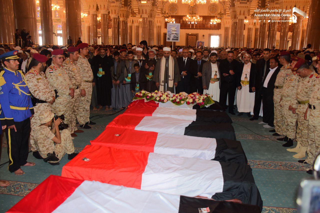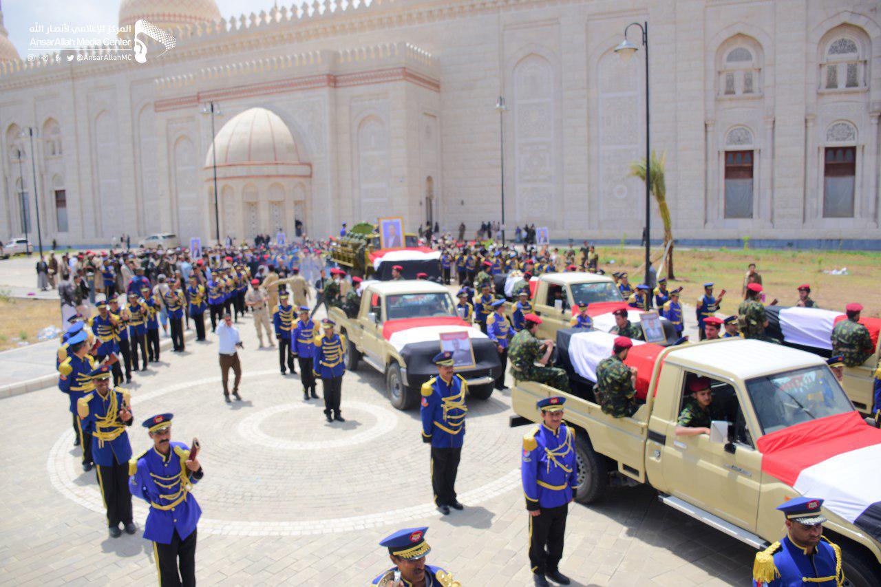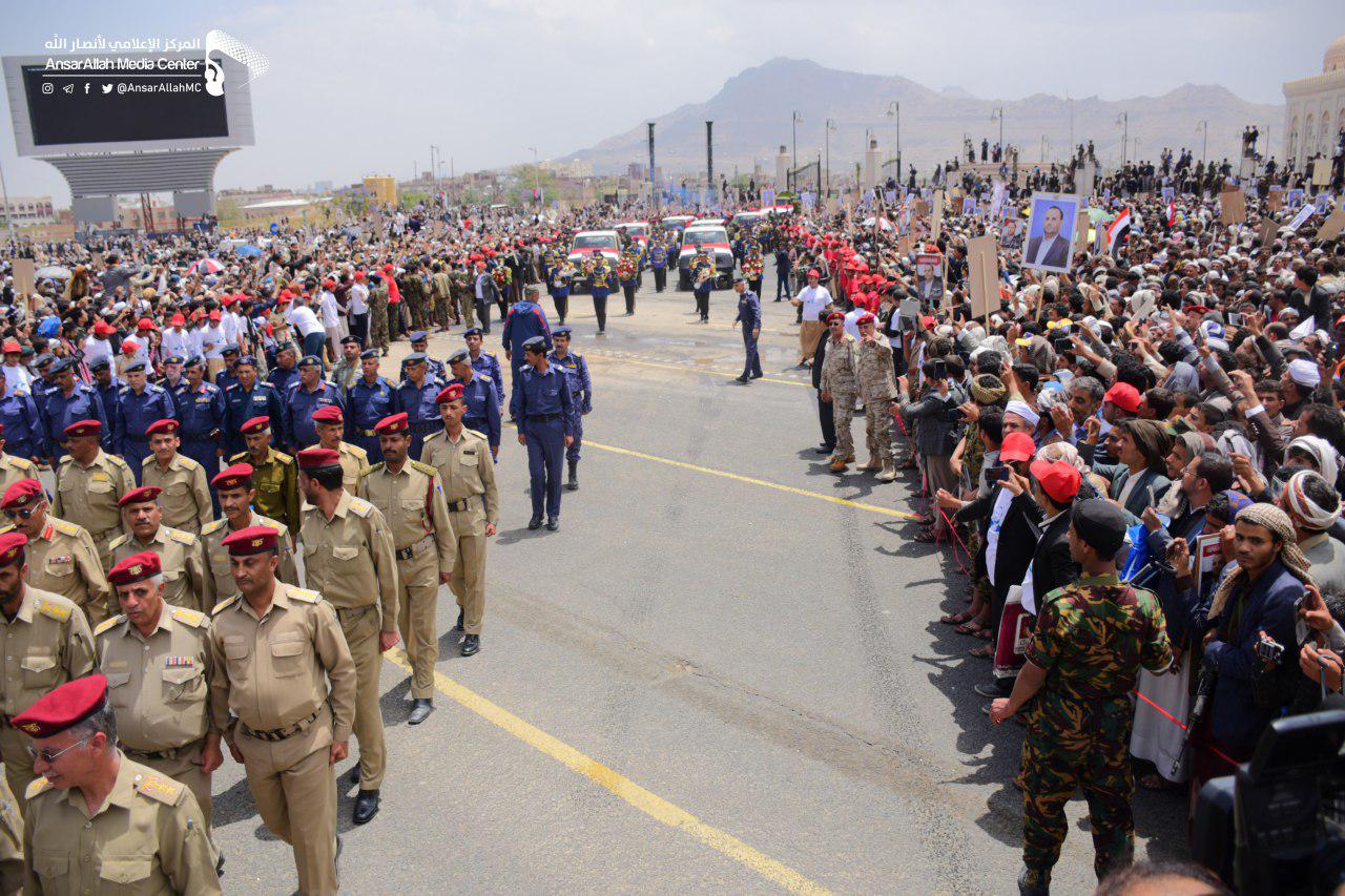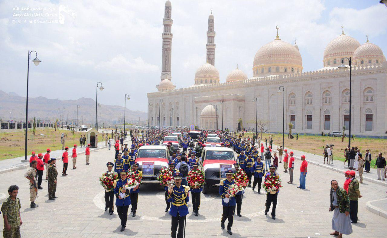 وكانت الحشود الجماهيرية، توافدت منذ مساء أمس إلى ميدان السبعين بالعاصمة صنعاء من مختلف المحافظات، للمشاركة في تشييع الرئيس الشهيد صالح الصماد ورفاقه الستة الذين استشهدوا جراء غارات لطيران العدوان بمحافظة الحديدة.