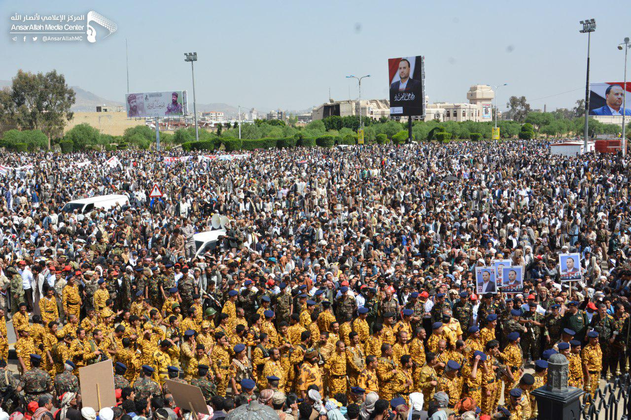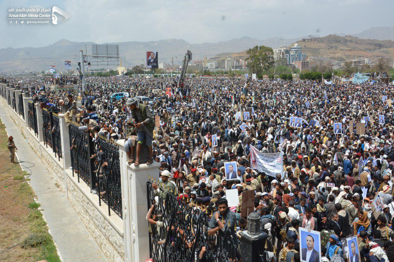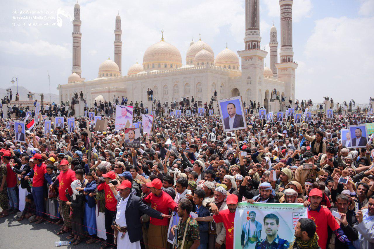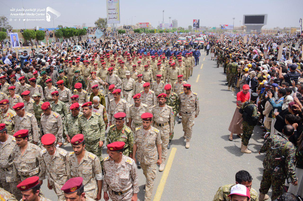 وكانت الحشود الجماهيرية، توافدت منذ مساء أمس إلى ميدان السبعين بالعاصمة صنعاء من مختلف المحافظات، للمشاركة في تشييع الرئيس الشهيد صالح الصماد ورفاقه الستة الذين استشهدوا جراء غارات لطيران العدوان بمحافظة الحديدة.