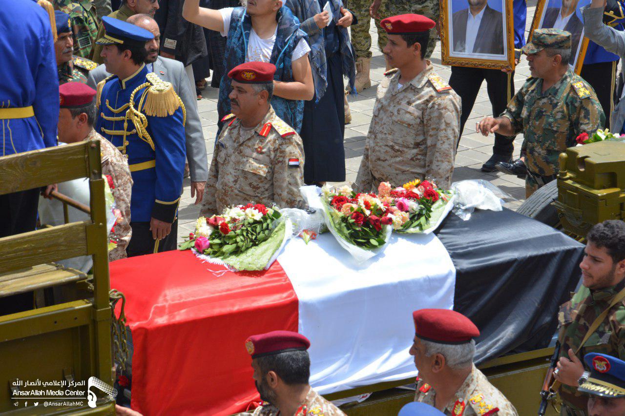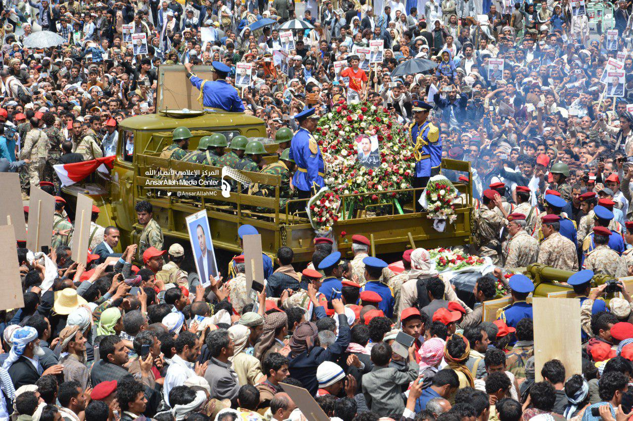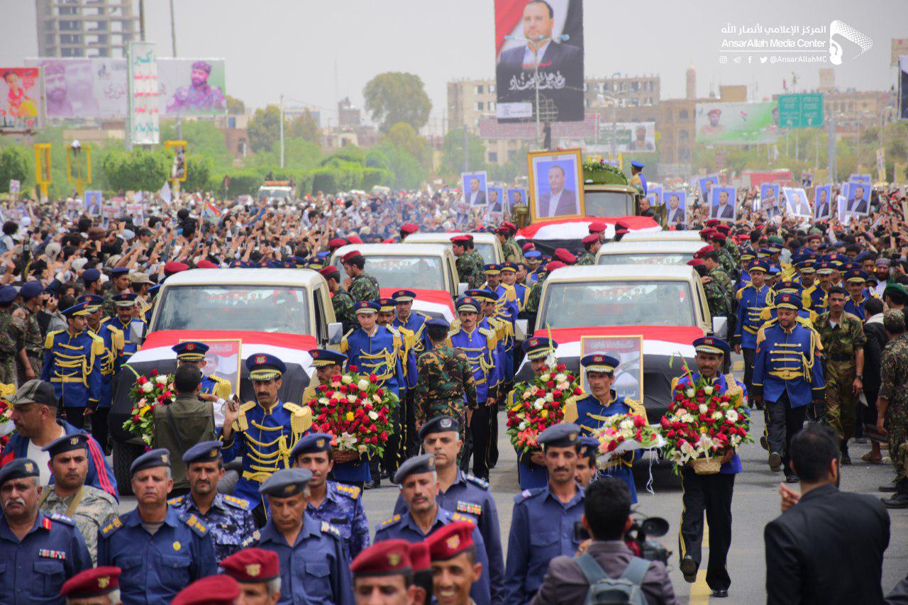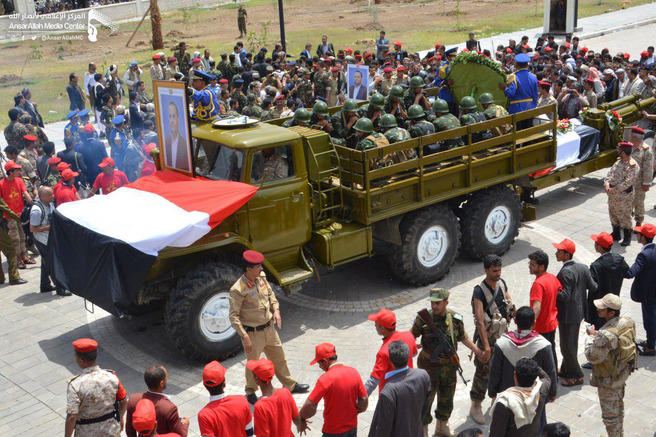 ودع اليمنيون اليوم السبت في موكب جنائزي رسمي وشعبي غير مسبوق الرئيس الشهيد صالح علي الصماد وستة من مرافقيه الذين استشهدوا بغارات لطيران العدوان السعودي الأمريكي بمحافظة الحديدة.