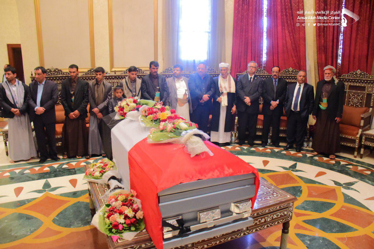 تقدم مراسم التشييع الأخ مهدي المشاط رئيس المجلس السياسي الأعلى وعدد من أعضاء المجلس السياسي ورئيس مجلس النواب يحيى علي الراعي ورئيس مجلس الوزراء الدكتور عبدالعزيز صالح بن حبتور والقائم بأعمال رئيس مجلس الشورى محمد حسين العيدروس ورئيس اللجنة الثورية العليا محمد علي الحوثي وعدد من أعضاء مجالس النواب والشورى والوزراء والقيادات العسكرية والأمنية وممثلو الأحزاب والتنظيمات السياسية والفعاليات الجماهيرية.