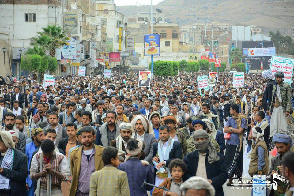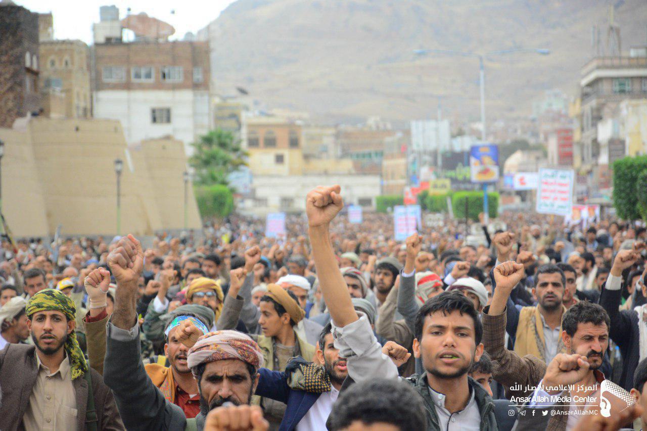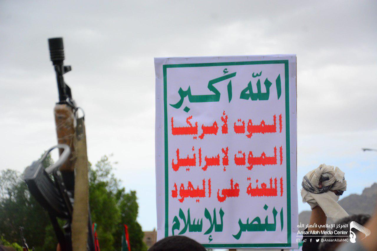 وردد المشاركون في المسيرة الهتافات المنددة بالمواقف الأمريكية والأنظمة العميلة إزاء القضية الفلسطينية، وأكدت الحشود الجماهيرية موقف الشعب اليمني الرافض والمناهض للصهاينة والمشروع الأمريكي.