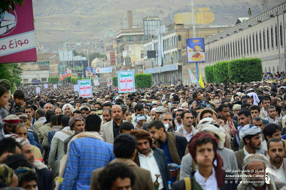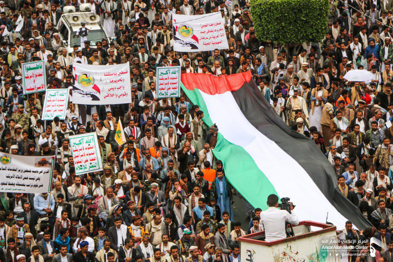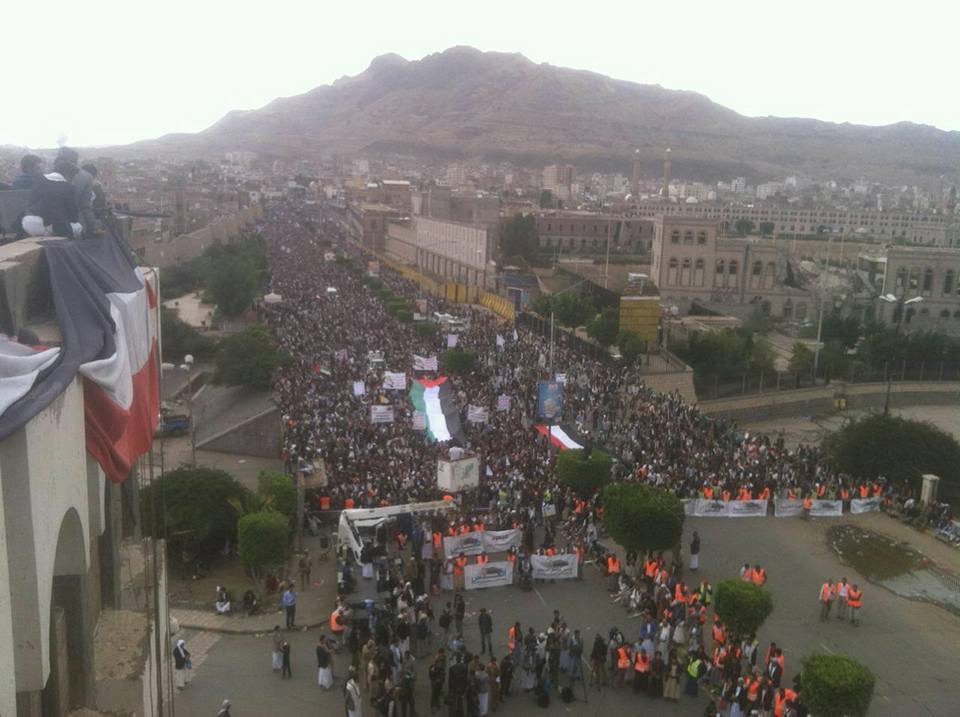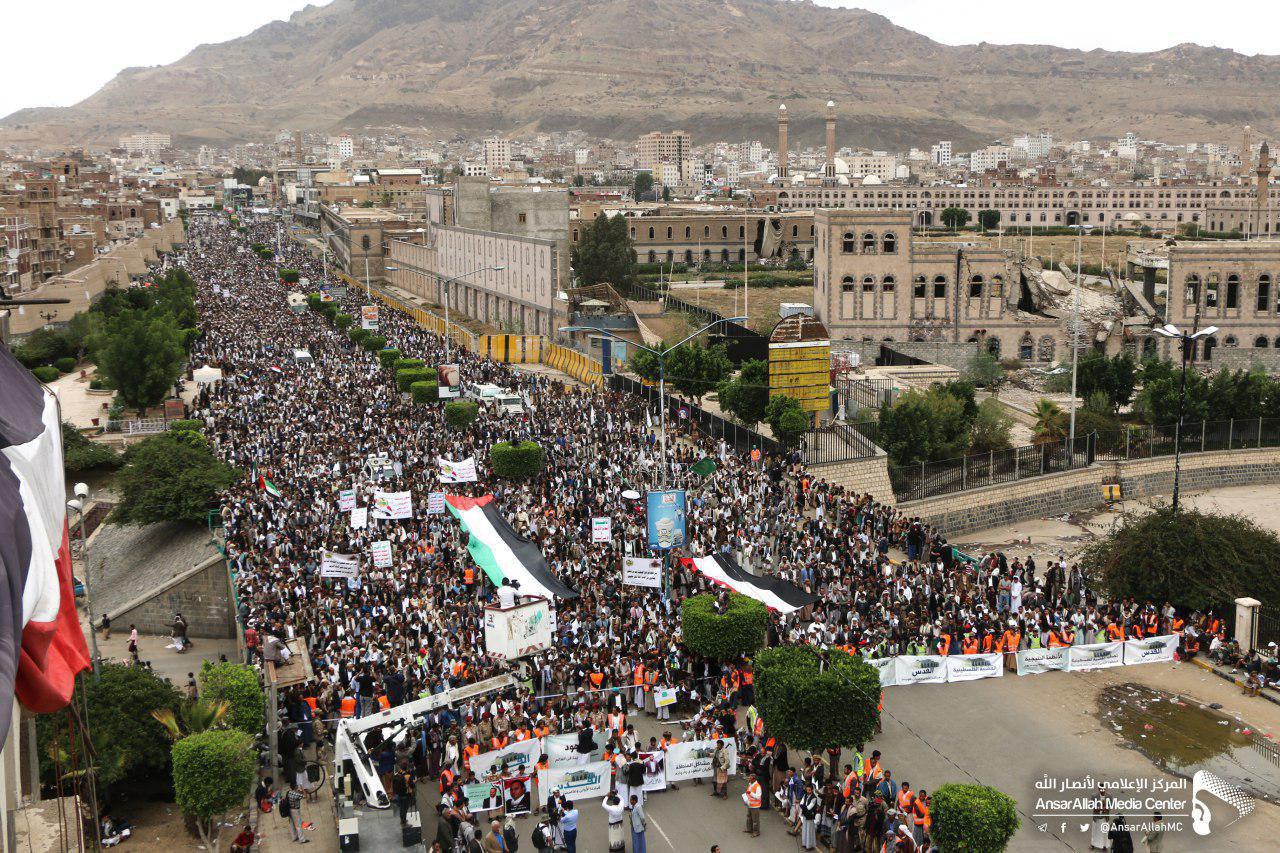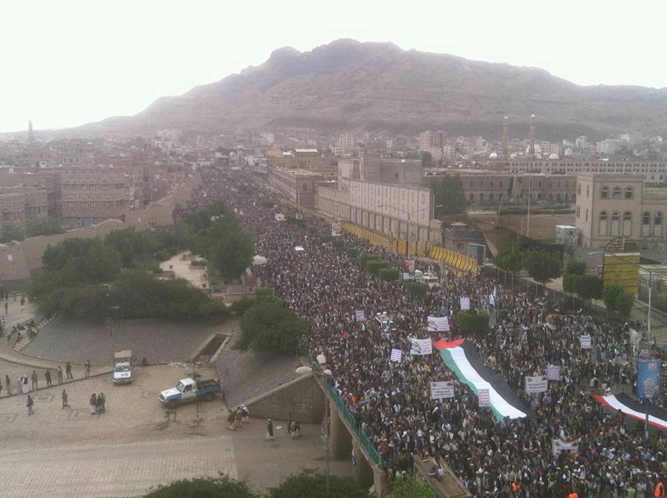 شهدت العاصمة صنعاء عصر اليوم مسيرة جماهيرية كبرى في باب اليمن تحت شعار ” القدس أرض المسلمين وقبلتهم الأولى” نصرة للقضية الفلسطينية ورفضا لتصفيتها.