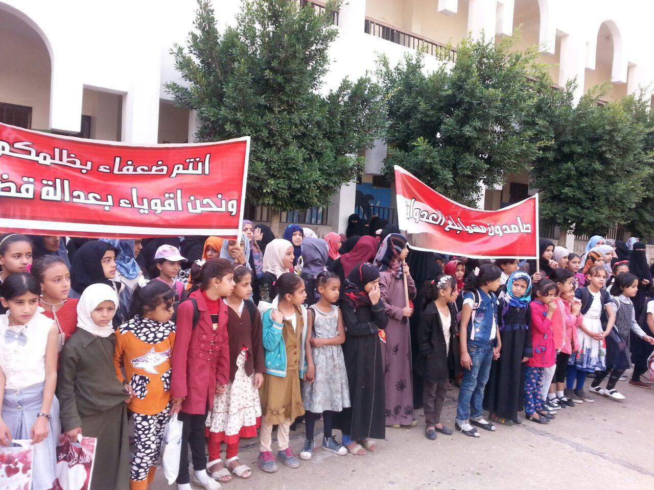 كما نفذت الهيئة النسائية الثقافية لأنصار الله في كل من قرية الوشل بمديرية عنس وقرية الملحا بمديرية الحداء بمحافظة ذمار وقفات احتجاجية تنديدا واستنكارا للجريمة البشعة التي ارتكبها طيران العدوان بحق أطفال مدينة ضحيان التي راح ضحيتها 51شهيدا و79جريحا.