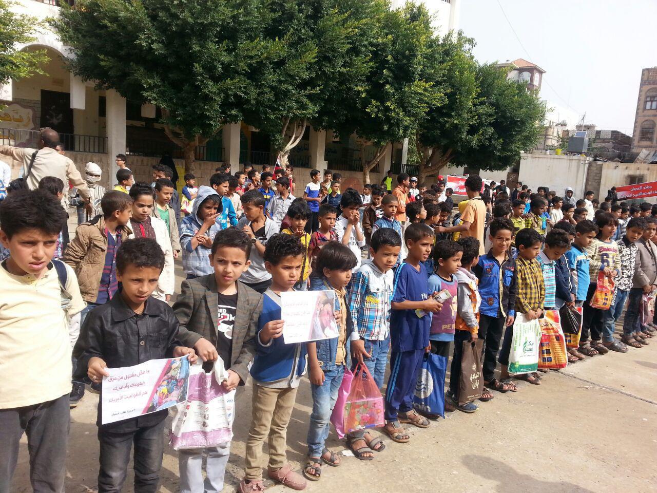 في العاصمة صنعاء نظم طلاب مدارس أمانة العاصمة وقفة احتجاجية تنديدا بجريمة العدوان بحق أطفال صعدة وكافة جرائم القتل التي يرتكبها العدوان بحق الطفولة في اليمن.