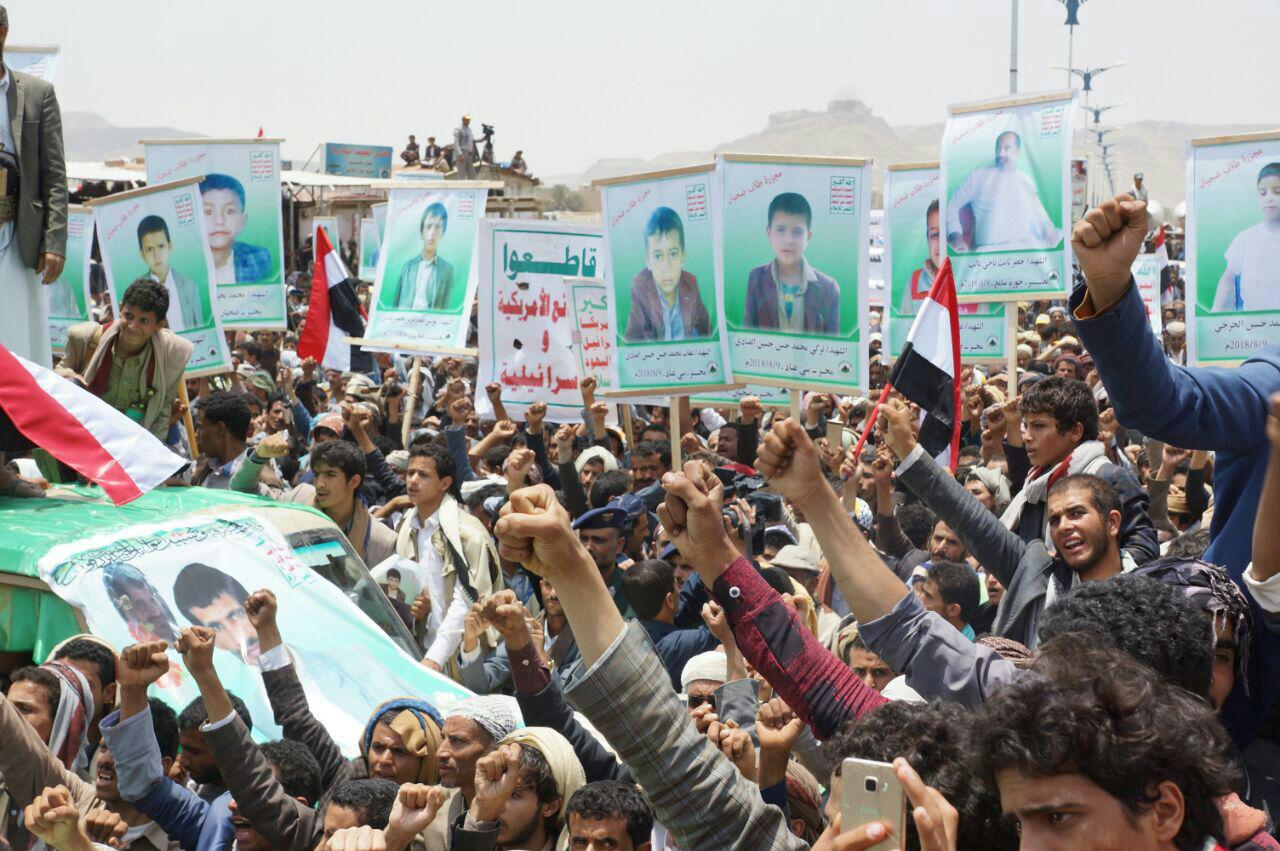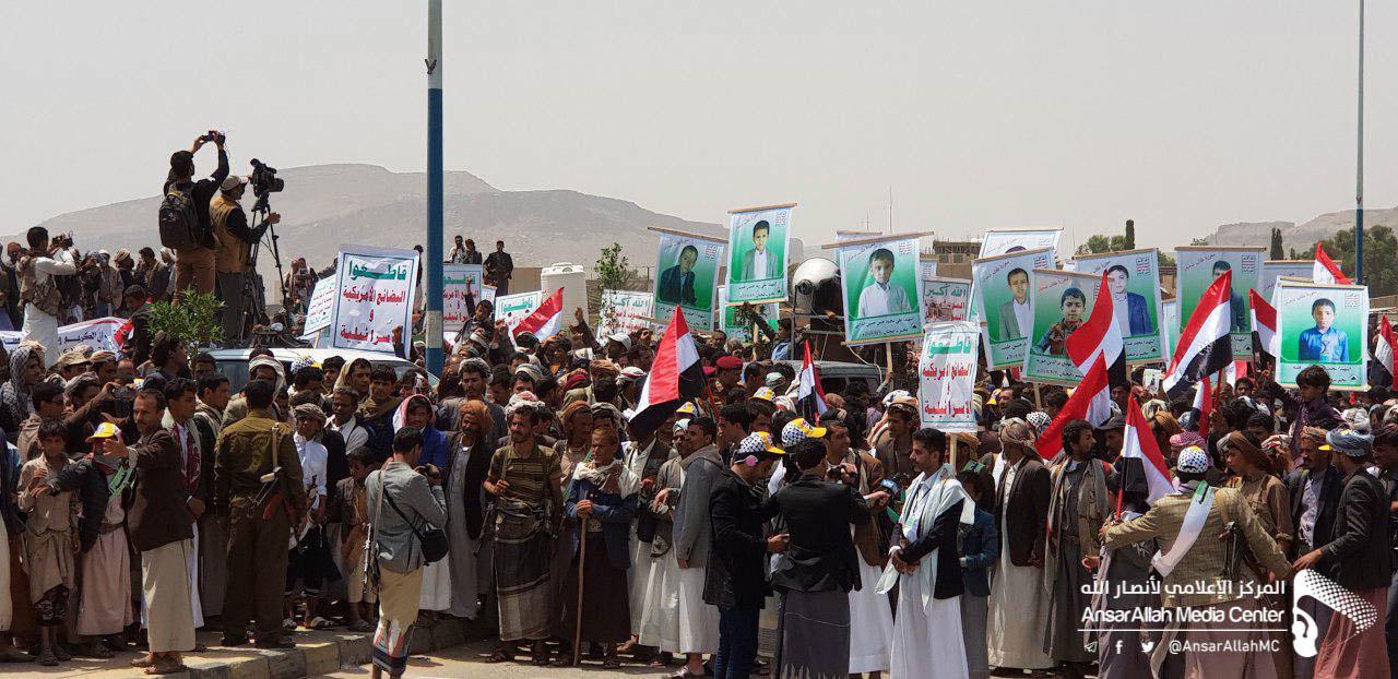 وبدأت فعاليات مراسم التشييع بمسيرة جماهيرية ردد فيها المشاركون هتافات منددة بالجريمة وداعية للثأر لدماء الشهداء، ورددوا هتافات منها “سنحاكمكم في الجبهات.. بسواعدنا والصرخات” و “ثأرا لدماء الأطفال.. سنريكم بأس الأبطال”، و” قولوا للأمريكيين: سنرد الصاع بصاعين”.