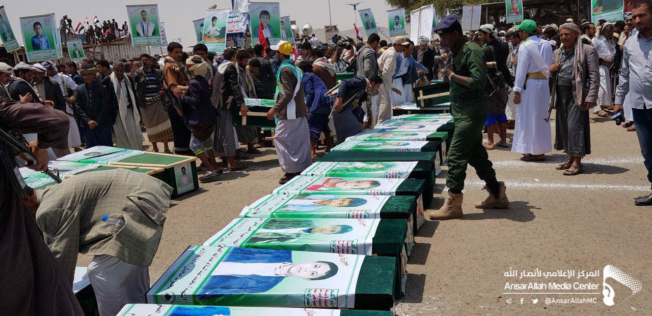 شاركت حشود غفيرة من أبناء محافظة صعدة ، اليوم الأثنين ، في مراسم تشييع شهداء المجزرة المروِعة التي ارتكبها طيران العدوان السعودي الاميركي في منطقة ضحيان ،الخميس الماضي، والتي راح ضحيتها أكثر من مئة وثلاثين بين شهيد وجريحٍ غالبيتهم من الأطفال.
