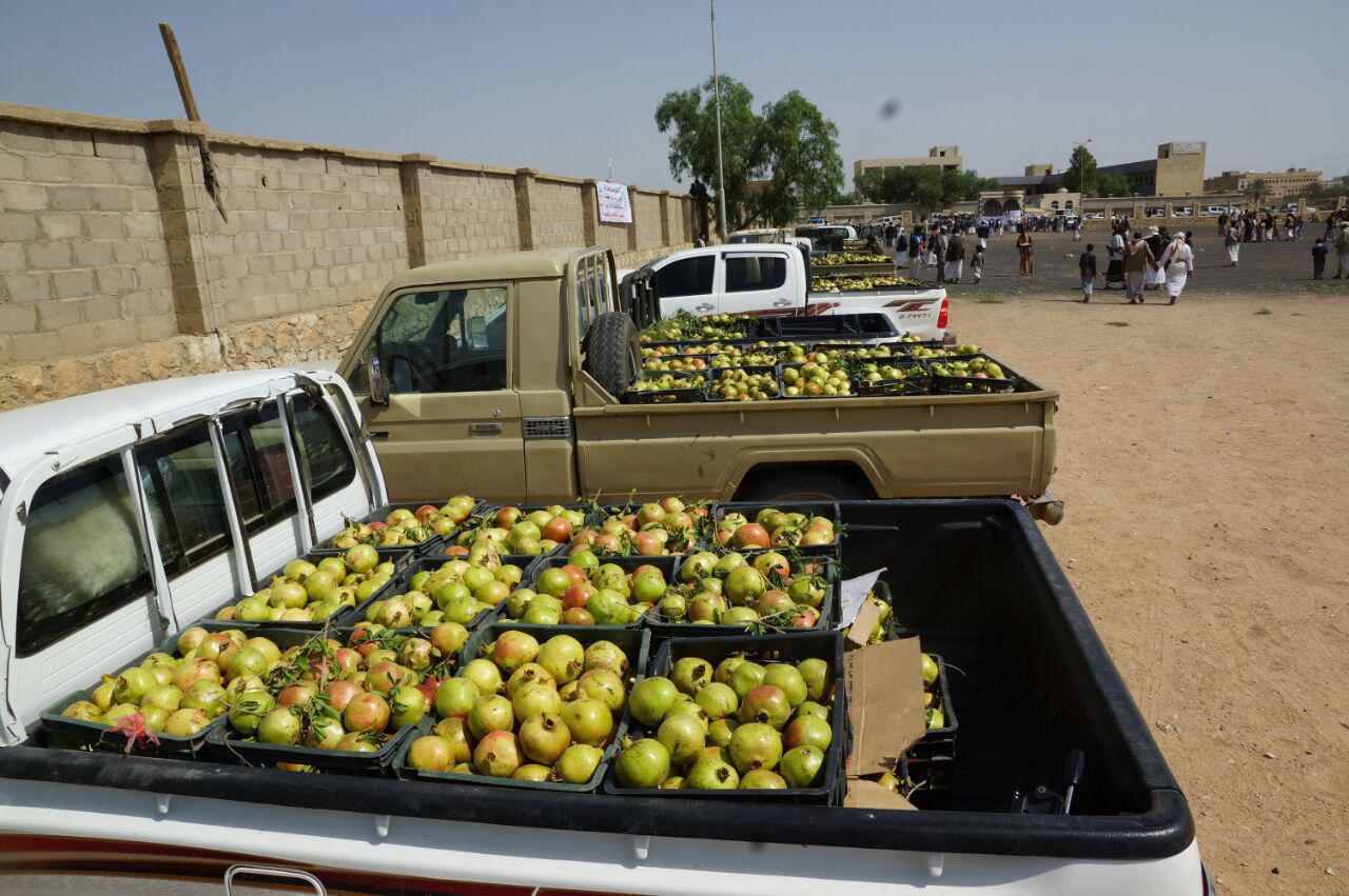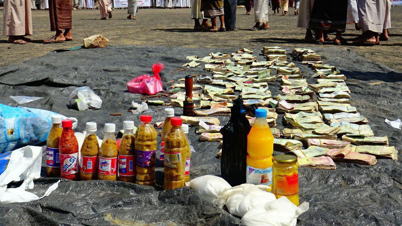 القافلة الغذائية أحتوت على مبالغ مالية كبيرة وذهب وذخيرة والعشرات من الأغنام والسلال الرمان والعنب ومواد غذائية متنوعة .
