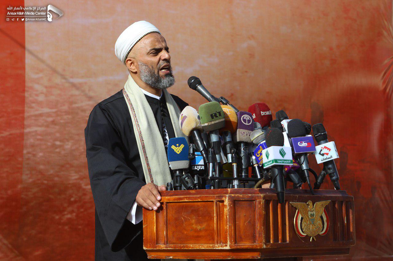 وفي كلمته أكد مفتي الديار اليمنية العلامة شمس الدين شرف الدين أن واجب الجميع التحرك لمواجهة العدوان.