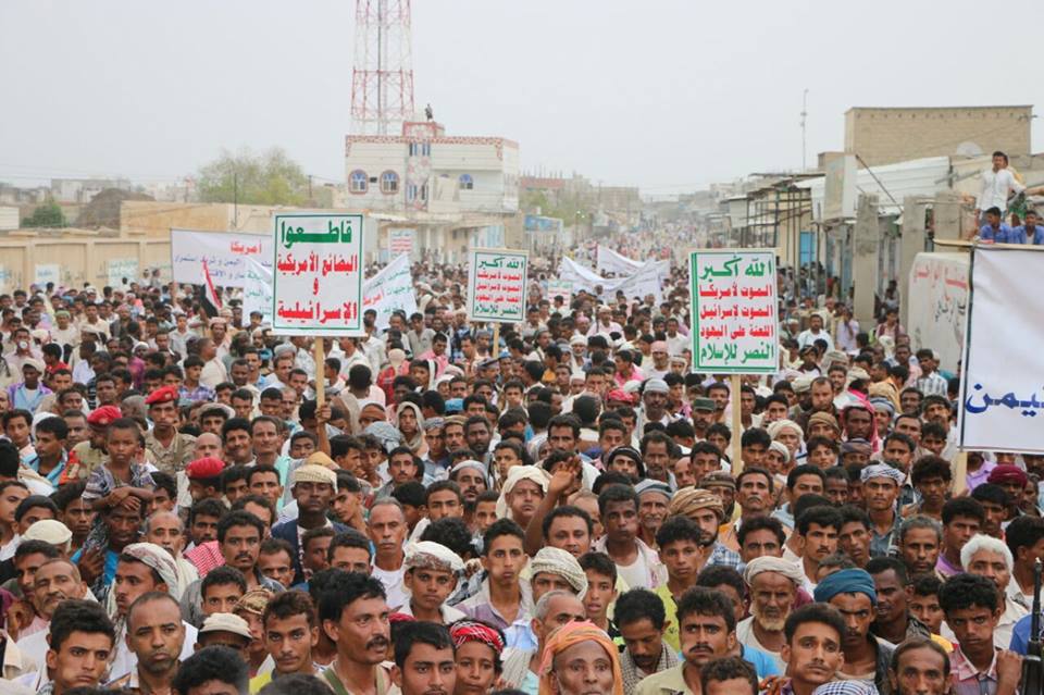 بالتوازي مع التظاهرة التي نظمت اليوم في صنعاء بمشاركة عشرات الآلاف من اليمنيين في باب اليمن للمشاركة في تظاهرة جماعية حاشدة تنديداً بالموقف الأمريكي الرافض للحل السلمي في اليمن، شهدت المديريات الشمالية بمحافظة الحديدة، تظاهرة ممالثة أحتشد فيها الآلاف للتعبير عن مواقفهم المناهضة للسياسة الأمريكية وتنديداً بإستمرار العدوان السعودي الاميركي على اليمن.